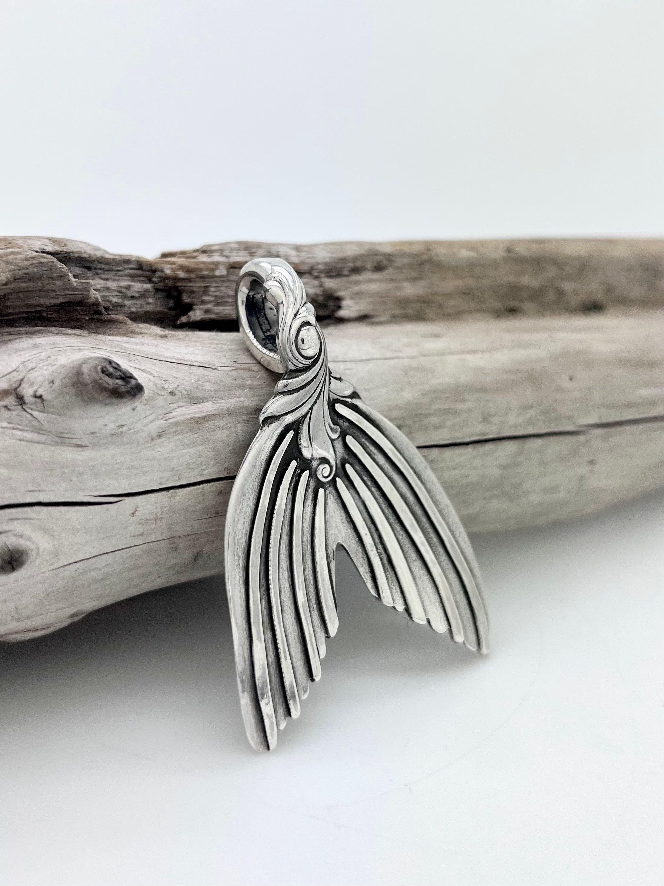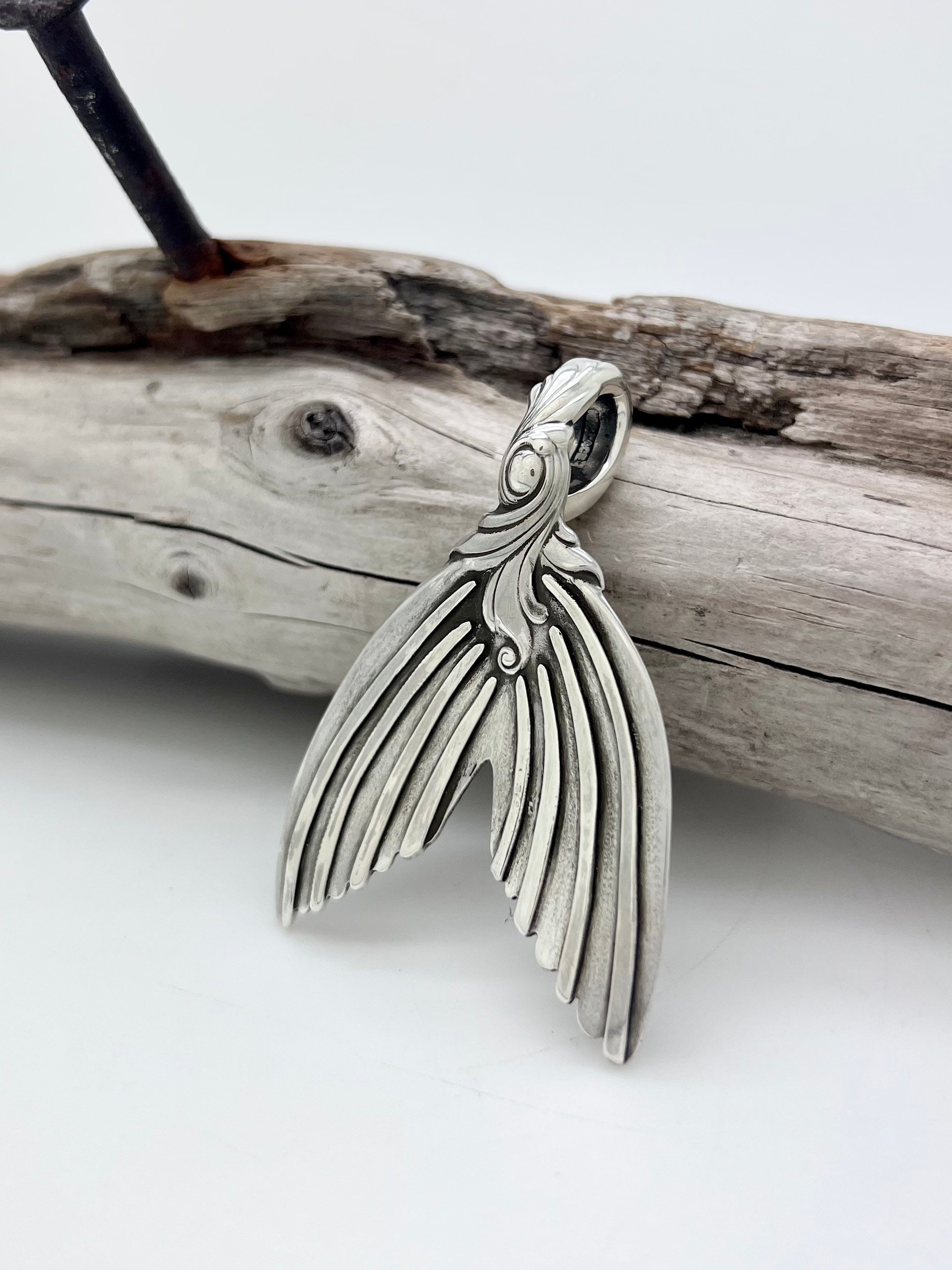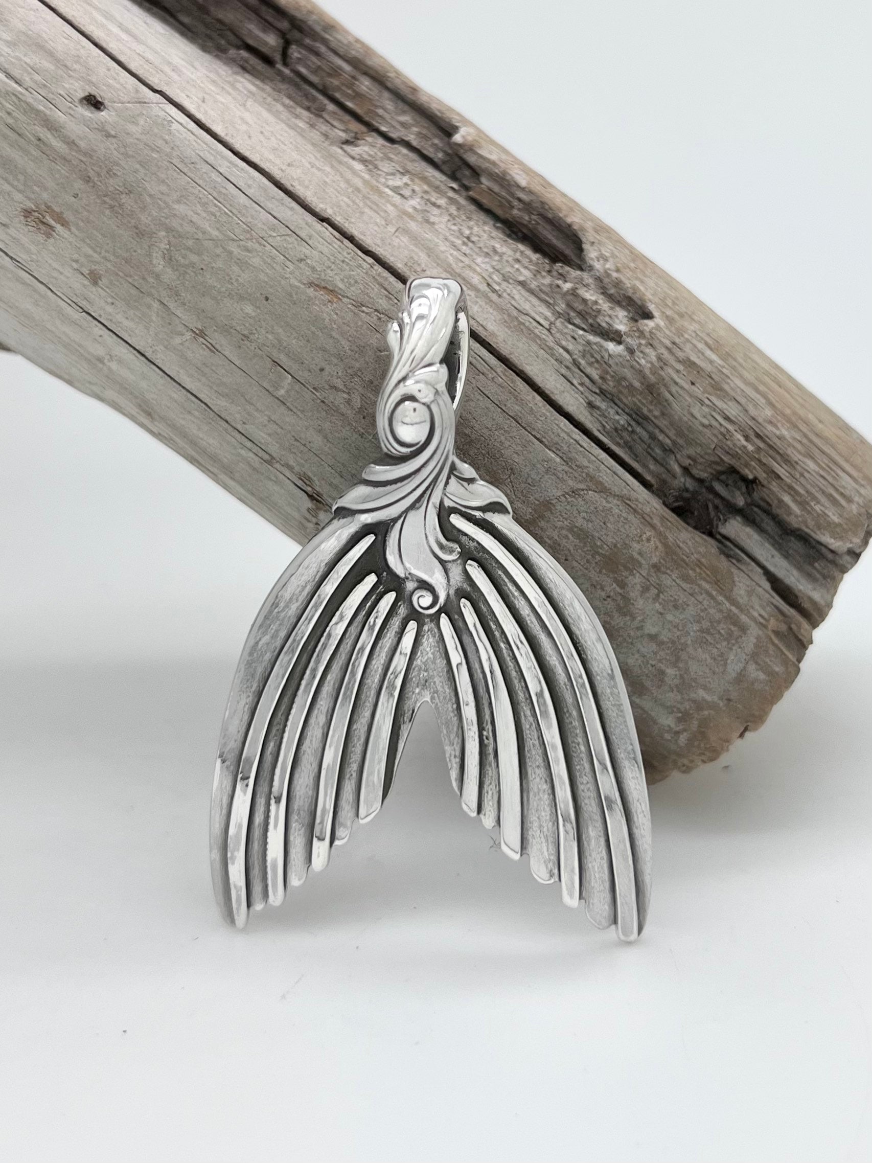 This amazing piece is a elegant Mermaid tail pendant handmade from a sterling silver spoon.