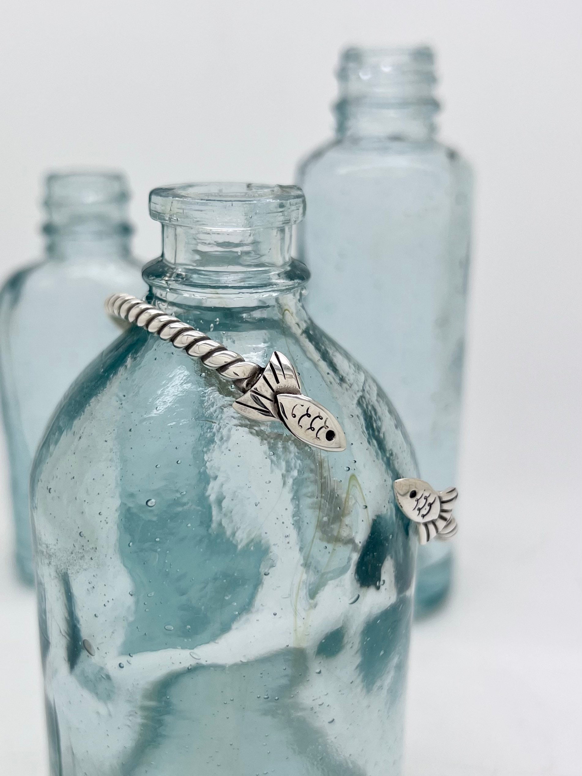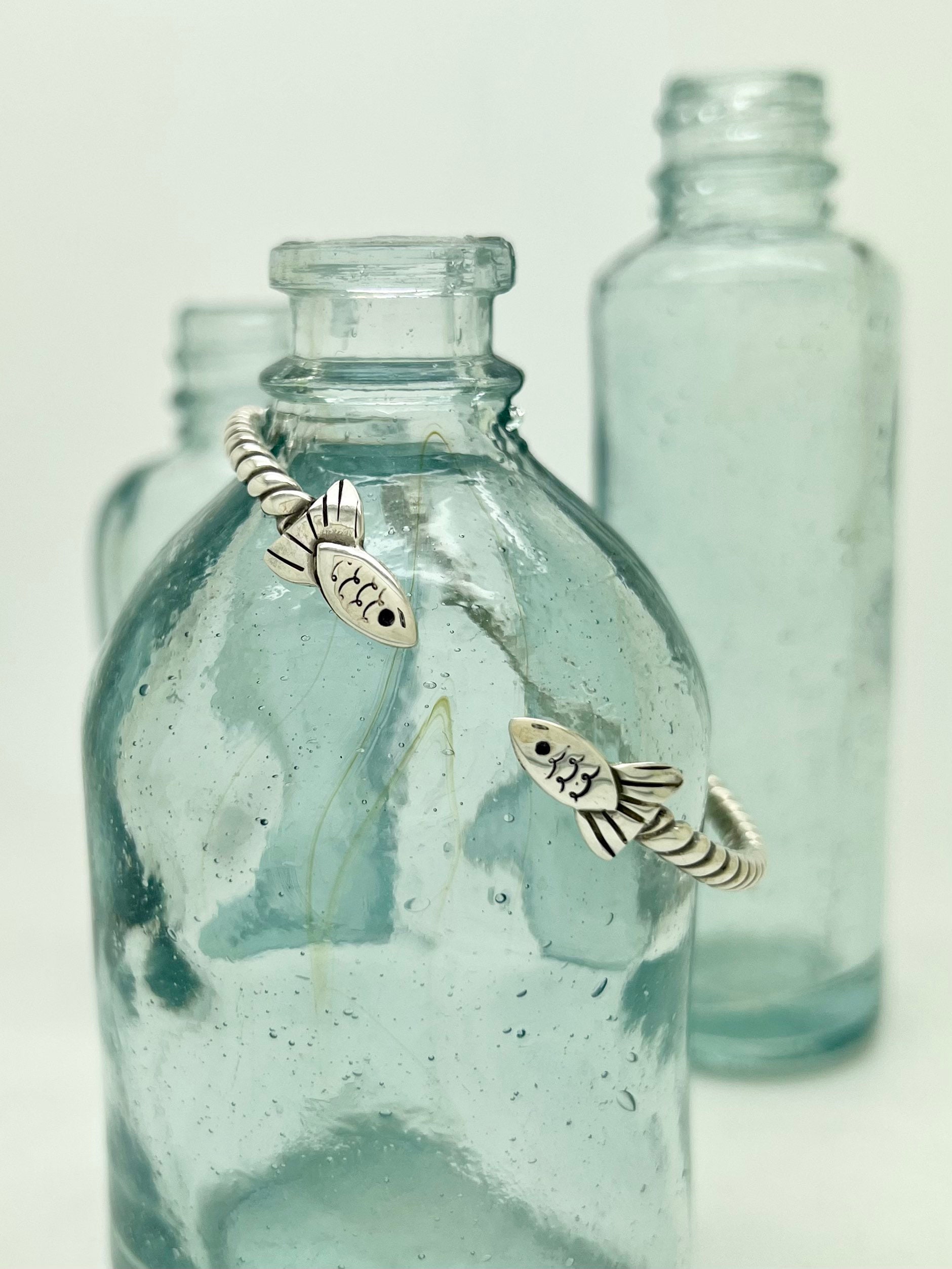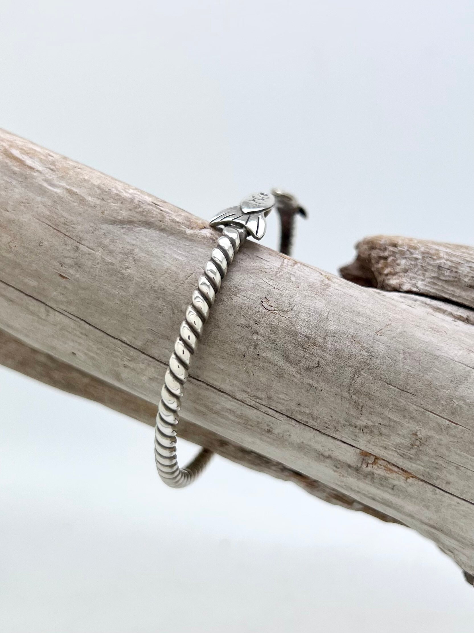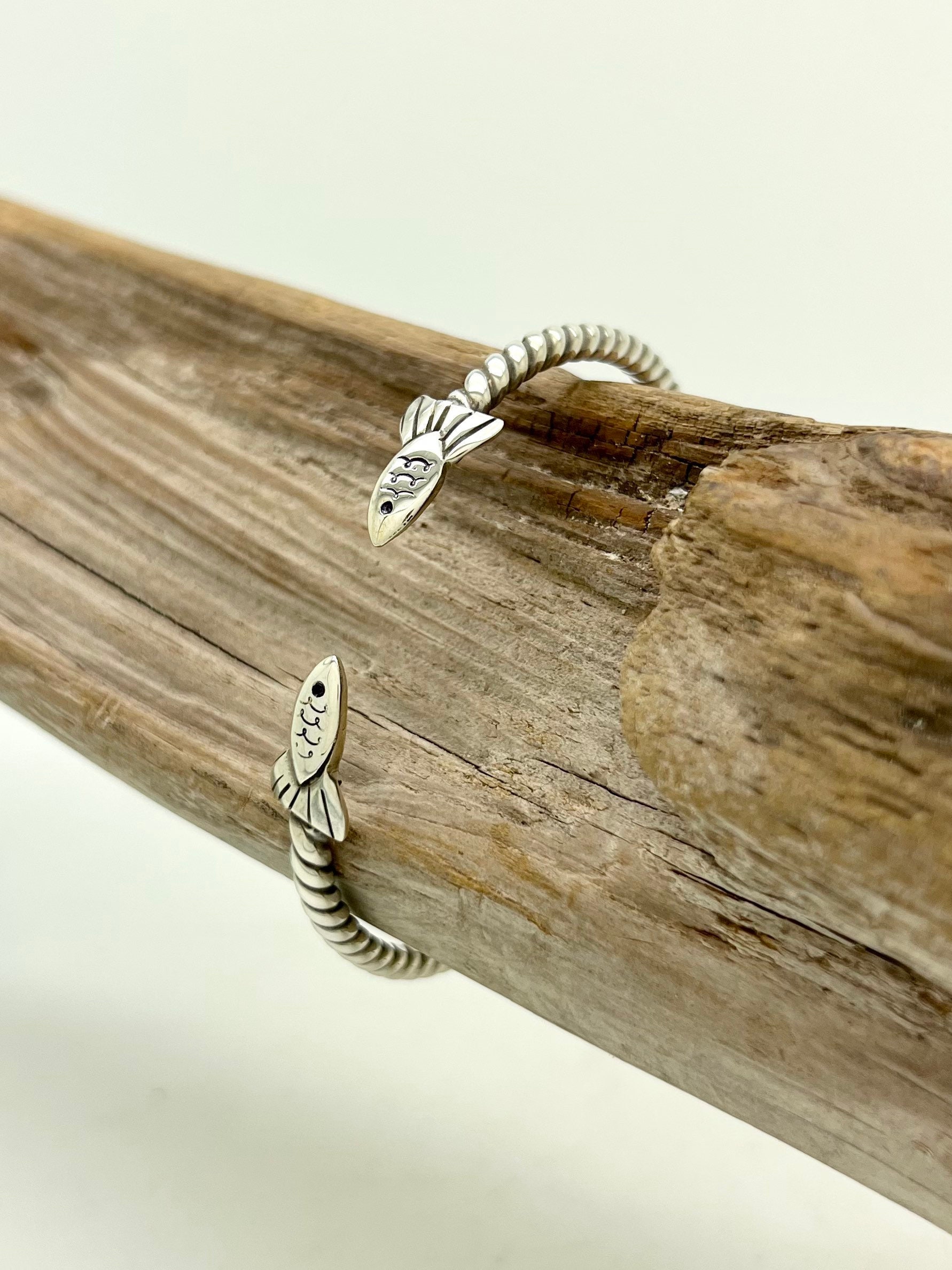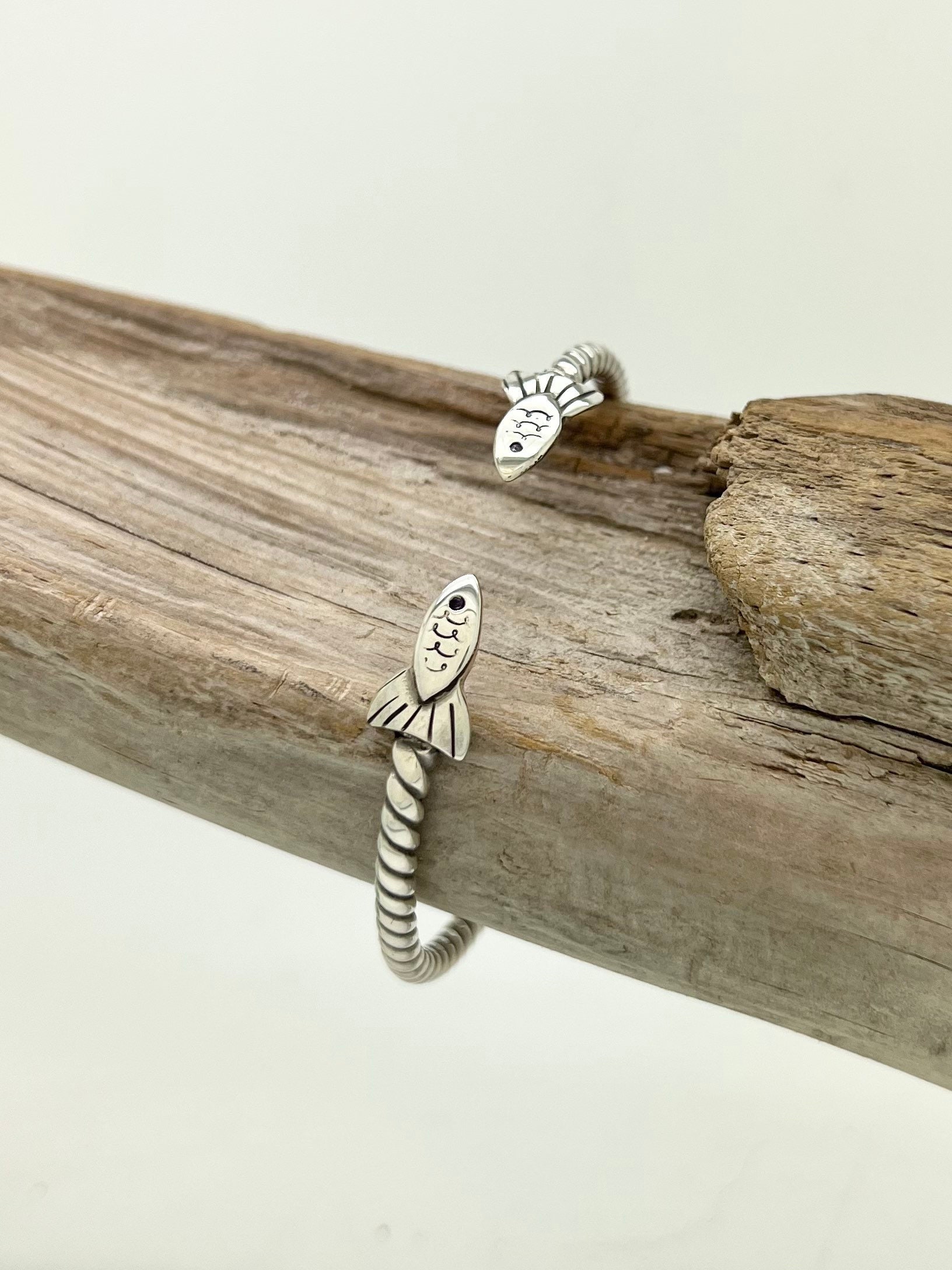 This is beautiful sterling silver Mini kissing fish rope bangle bracelet. These are amazing in a miss matched pair or a stack of three!! This is my twist on antique west Indies bangle bracelets. My sister and I have been collecting and wearing them for years, My original West Indies bangle is from My Mom and Dads honey moon and growing up My mother didn't take them off. The bangles gave me the inspirations to somehow make my own and to incorporate spoons into them.