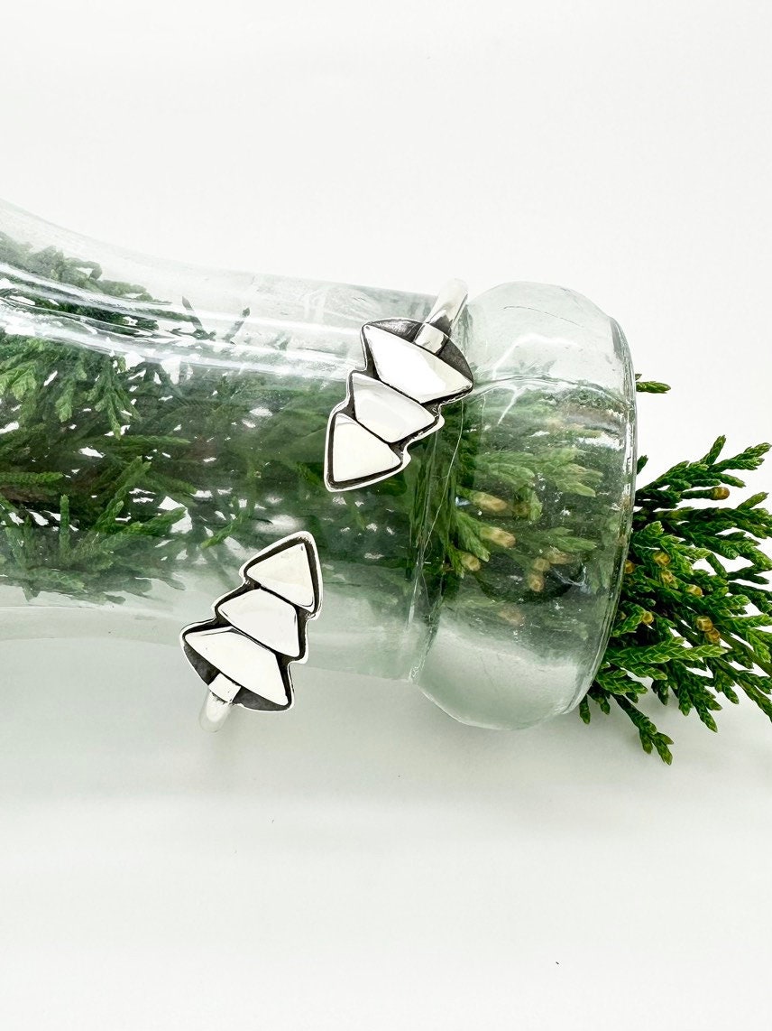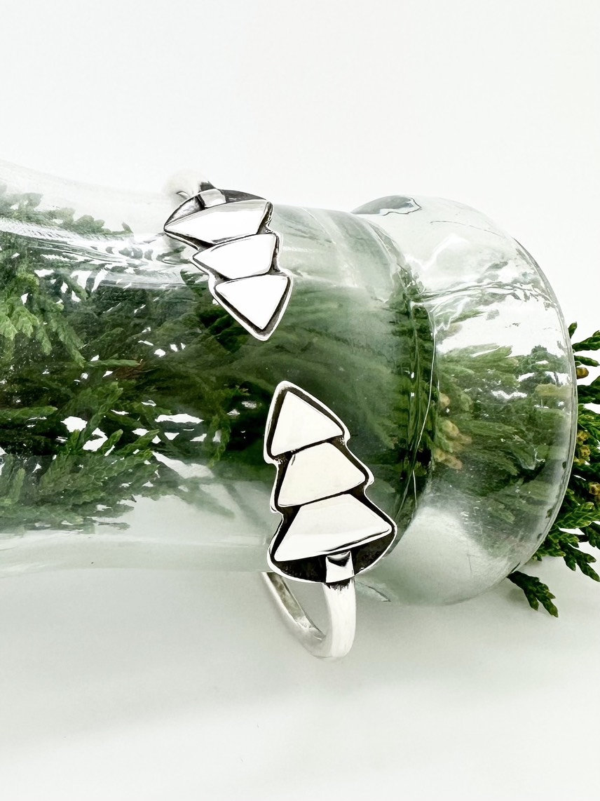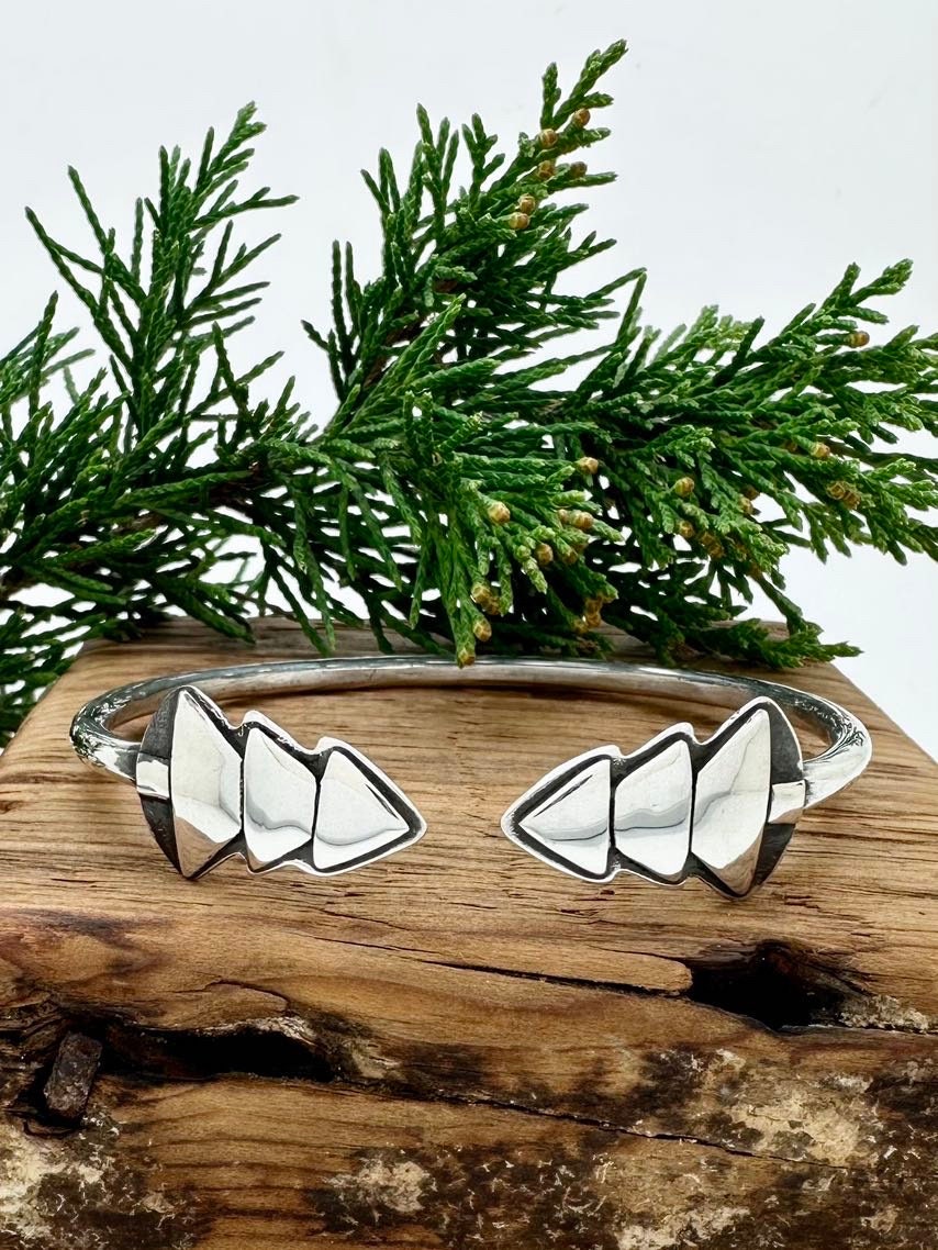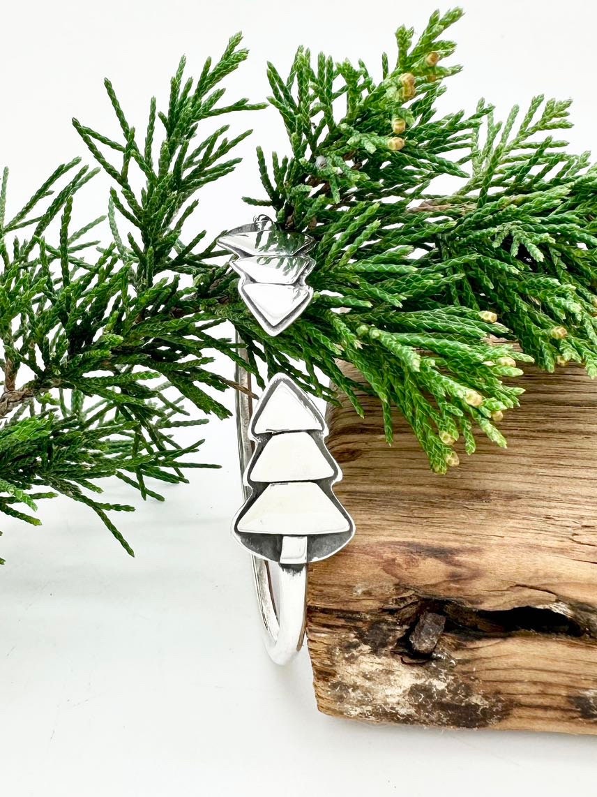 This is beautiful one of a kind sterling silver Christmas Tree bangle bracelet. These are amazing in a miss matched pair or a stack of three!! This is my twist on antique west Indies bangle bracelets. My sister and I have been collecting and wearing them for years, My original West Indies bangle is from My Mom and Dads honey moon and growing up My mother didn't take them off. The bangles gave me the inspirations to somehow make my own and to incorporate spoons into them.