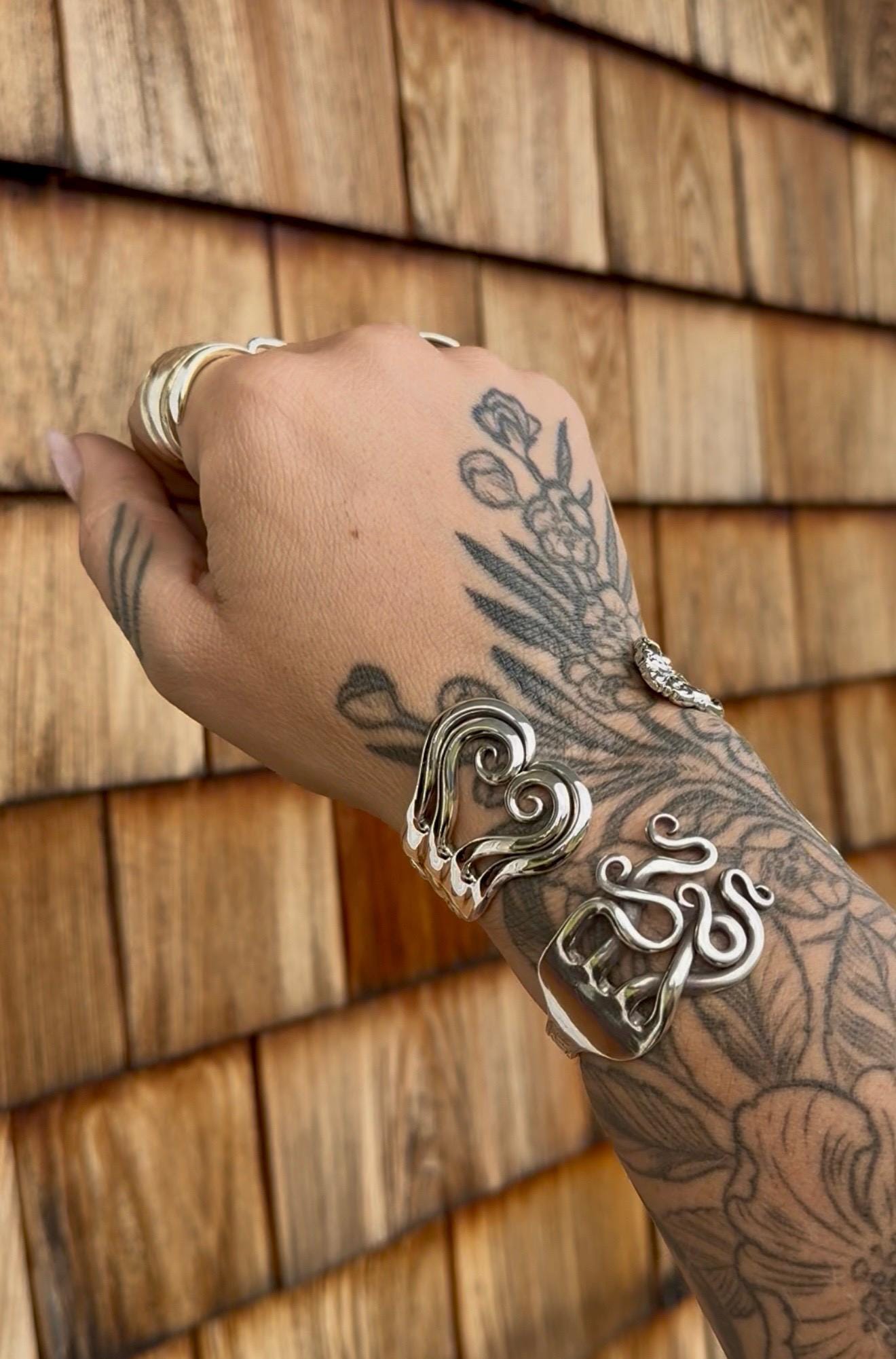 This amazing piece is a winded tine fork bracelet handmade from a sterling silver fork.