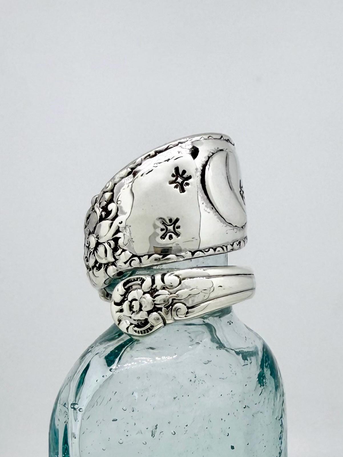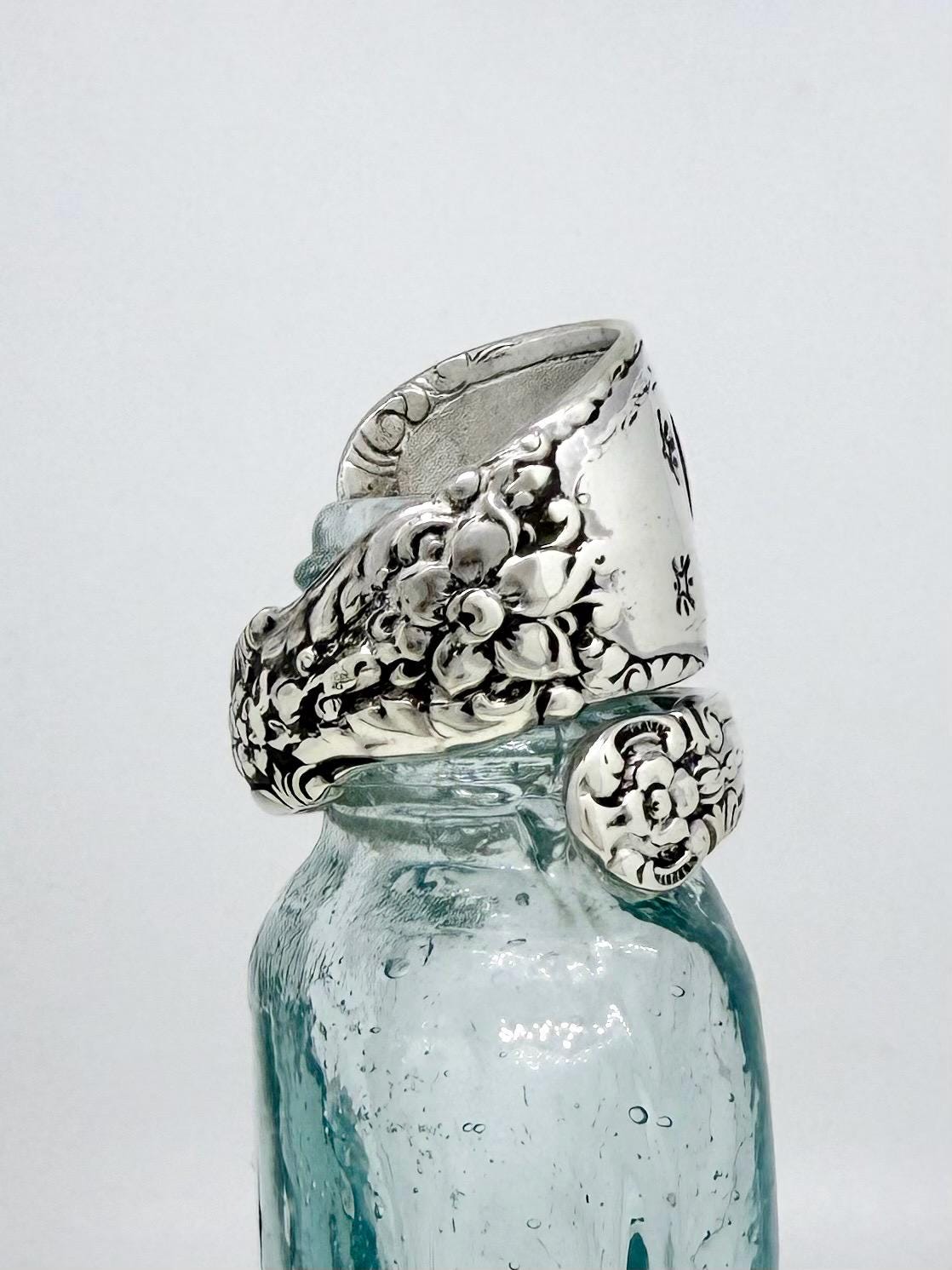 This is a spoon ring made from Solid Towle Sterling, Silver Spoon. The pattern is called "Old Mirror" and is from 1940.