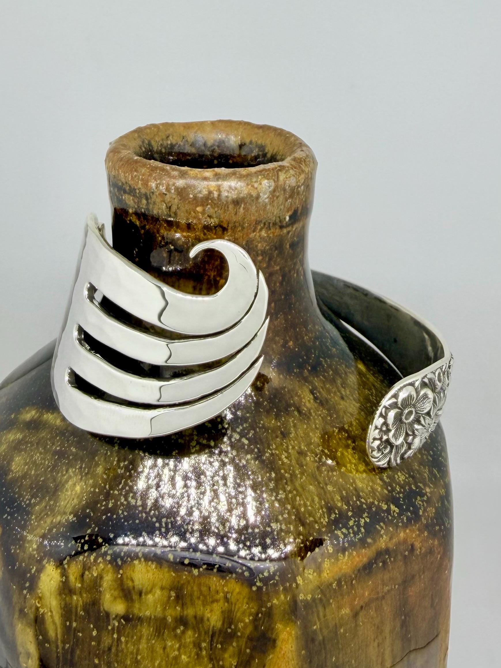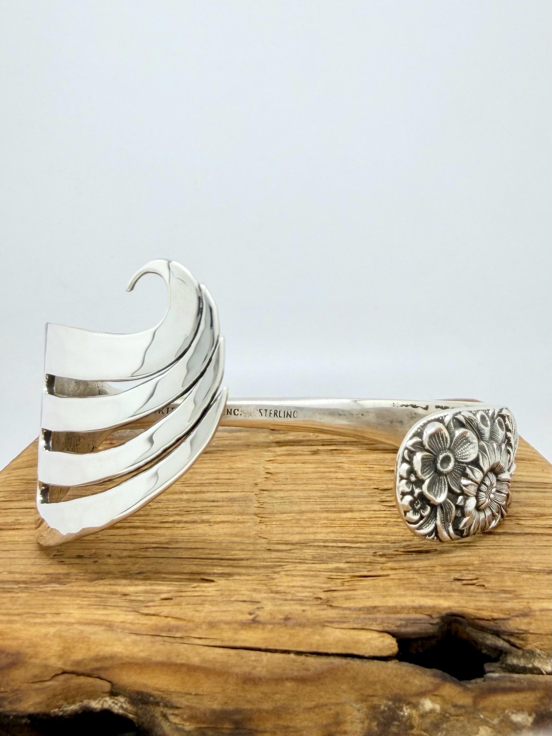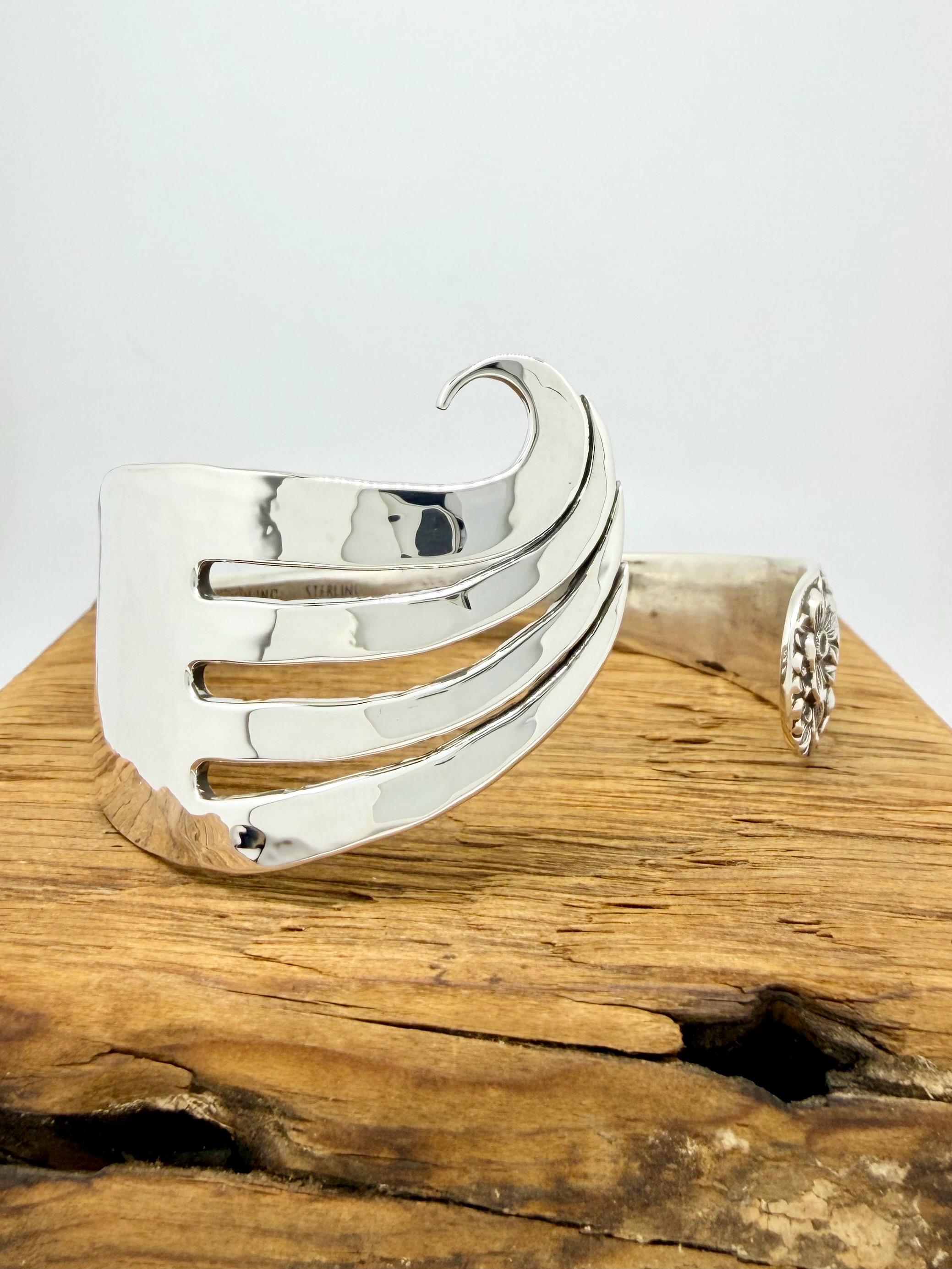 Sterling Silver Fork Cuff Bracelet, Wave