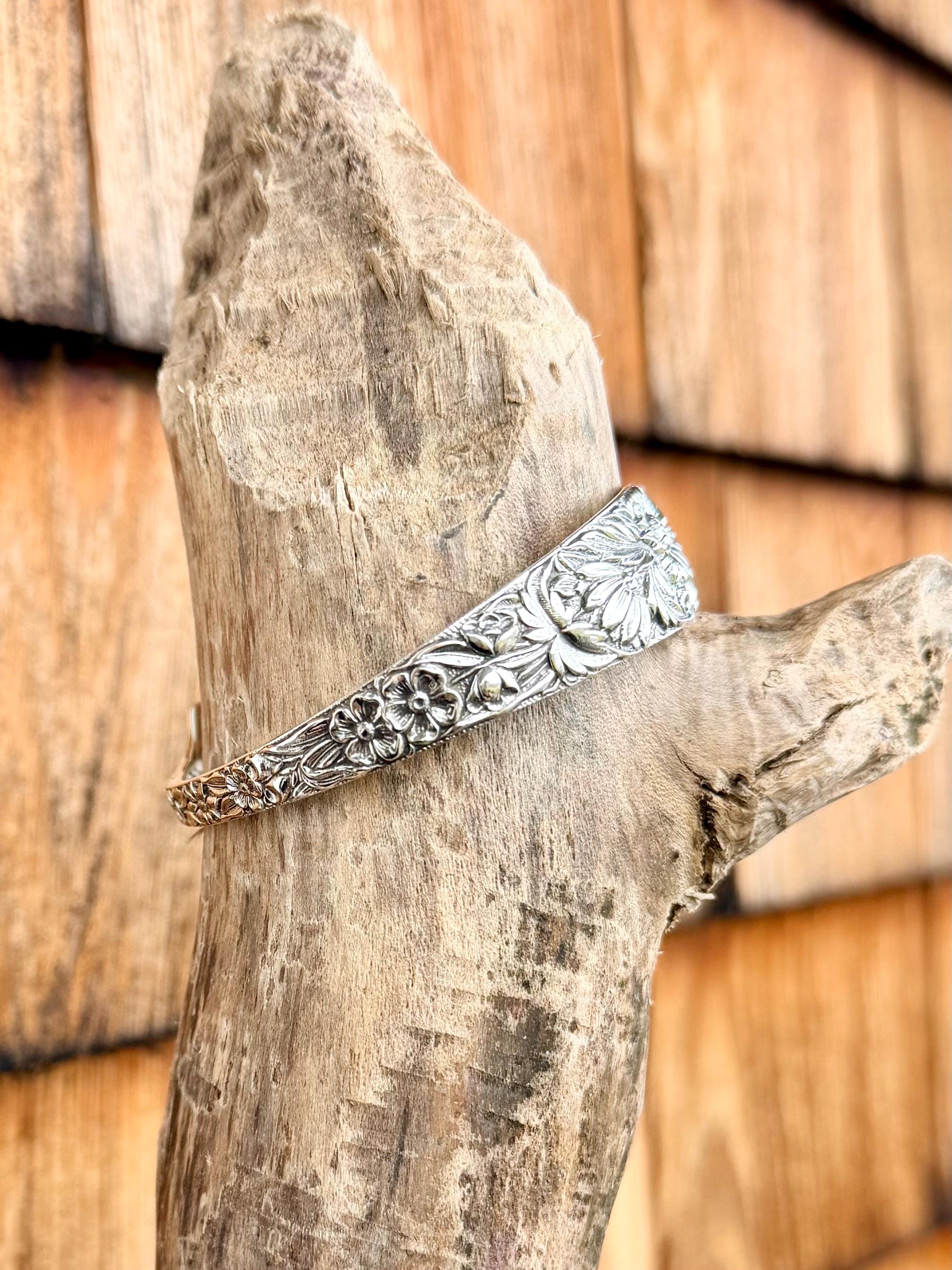 This amazing piece is a winded tine fork bracelet handmade from a sterling silver fork.