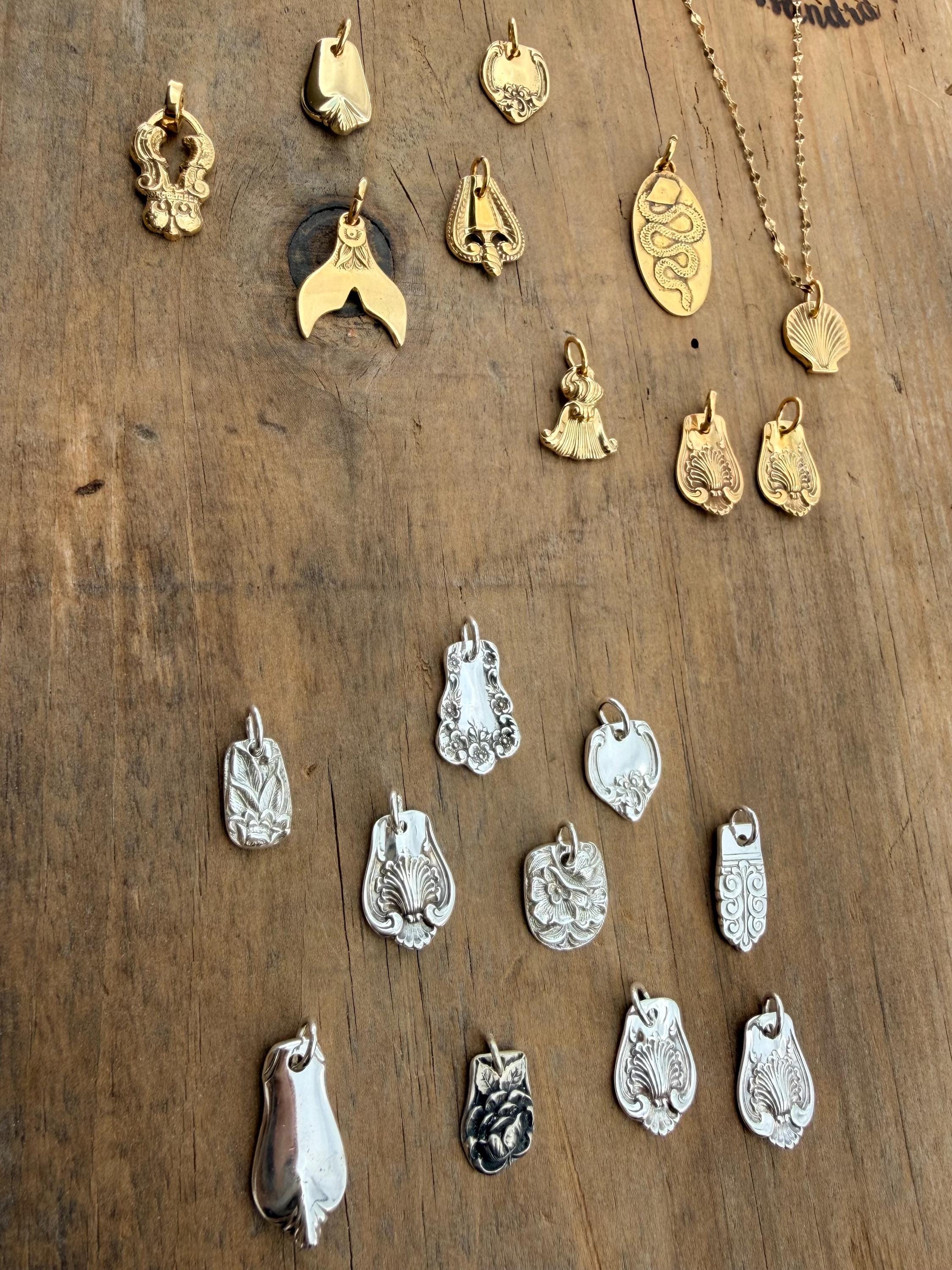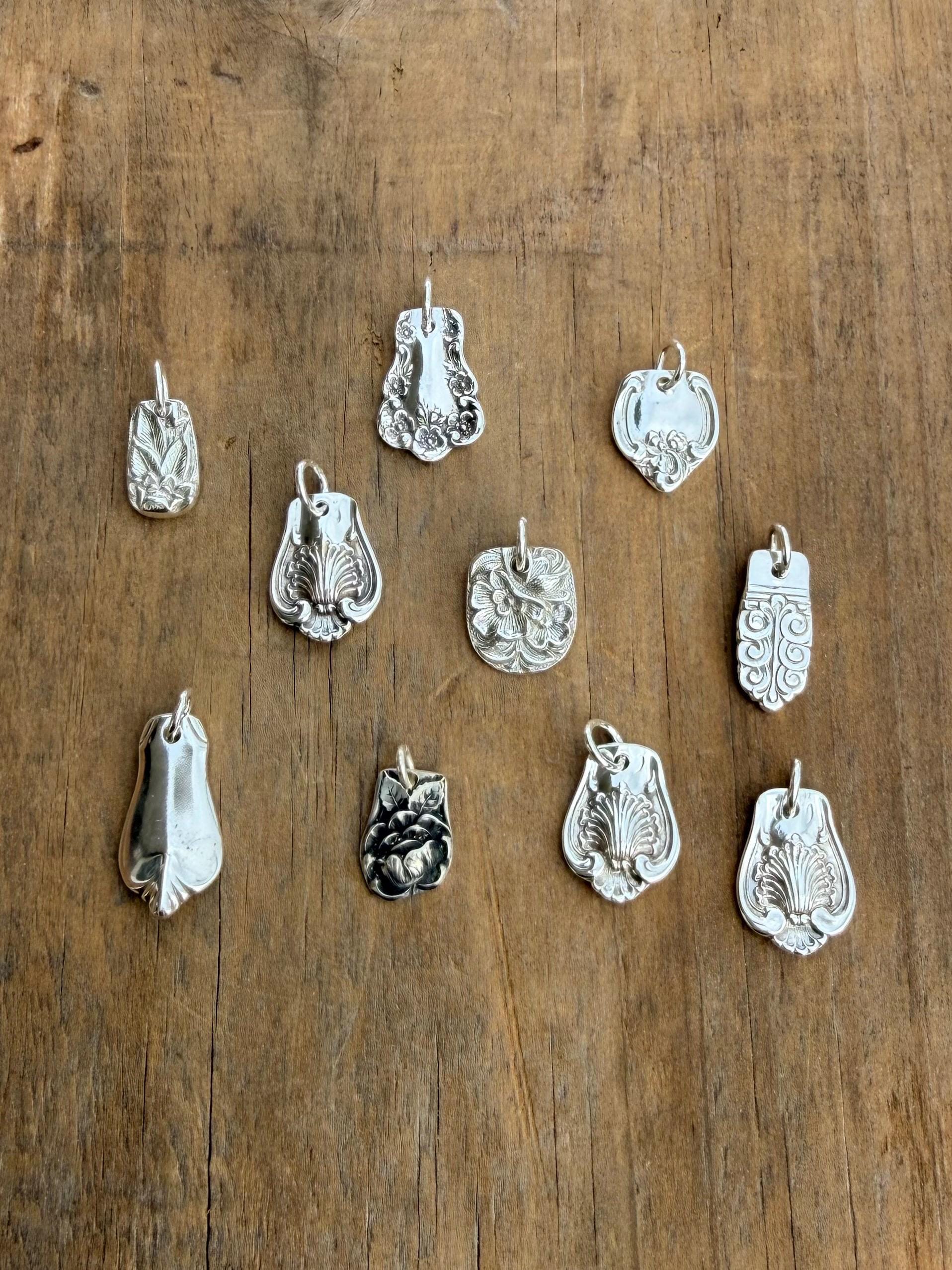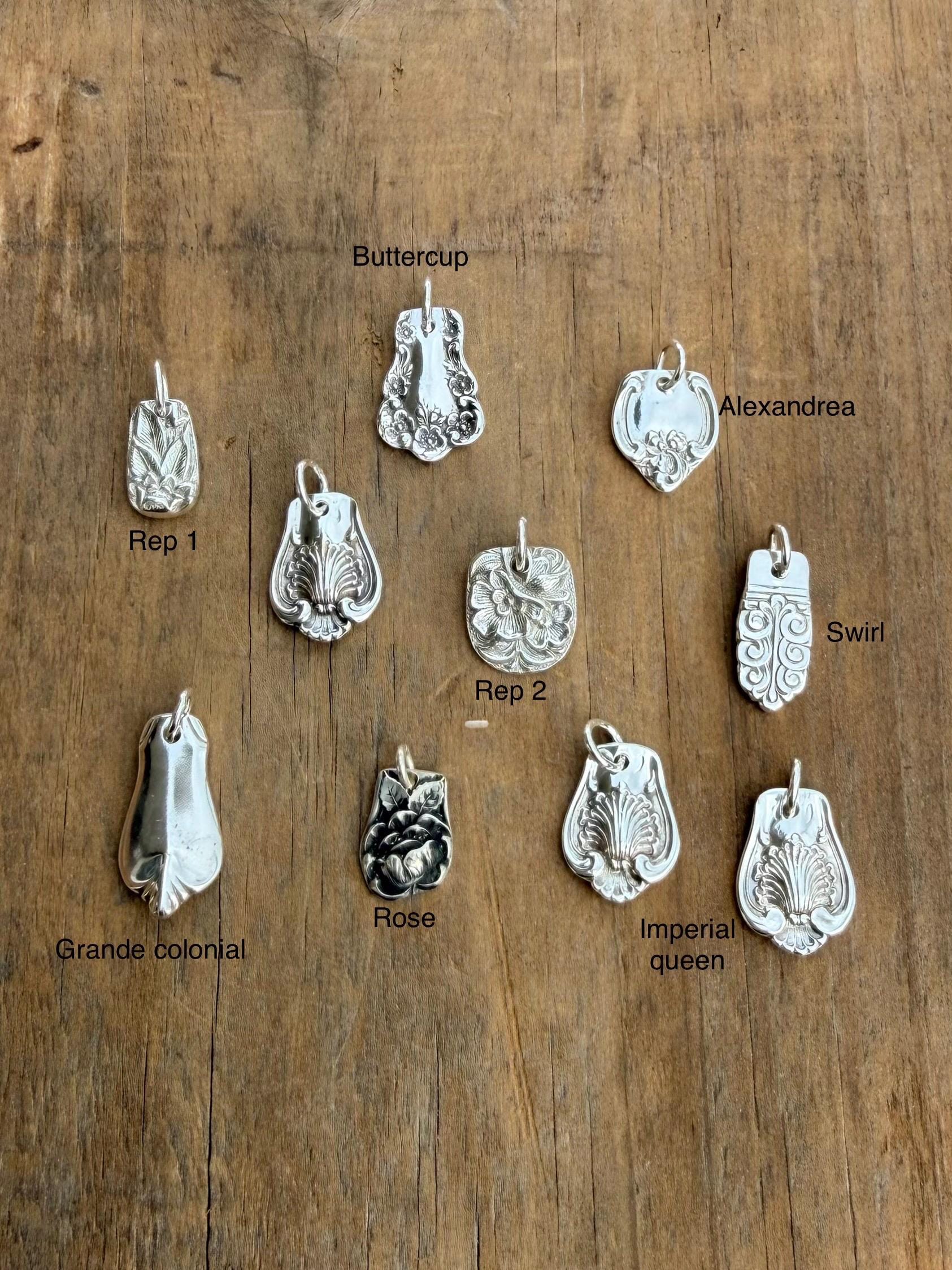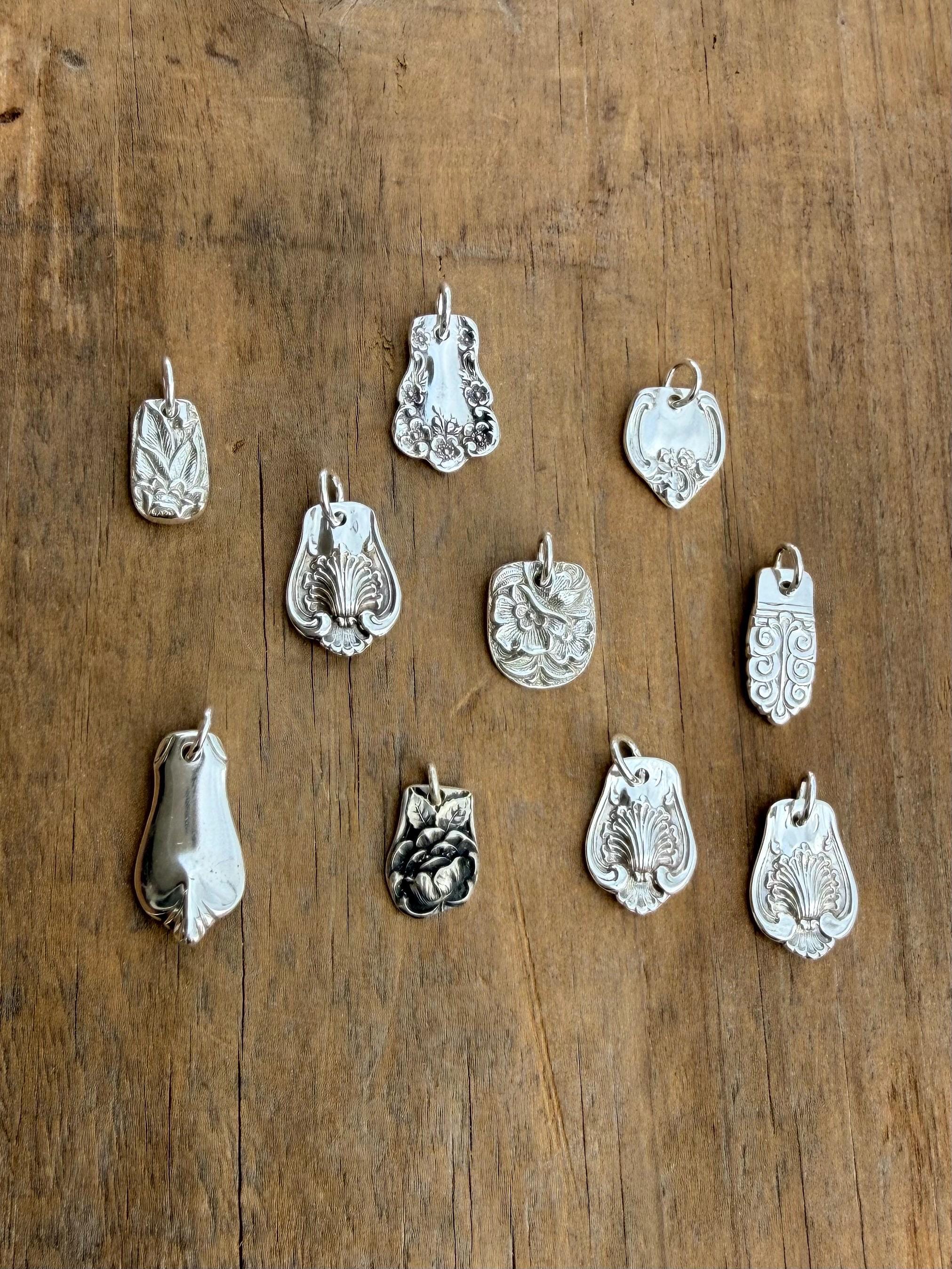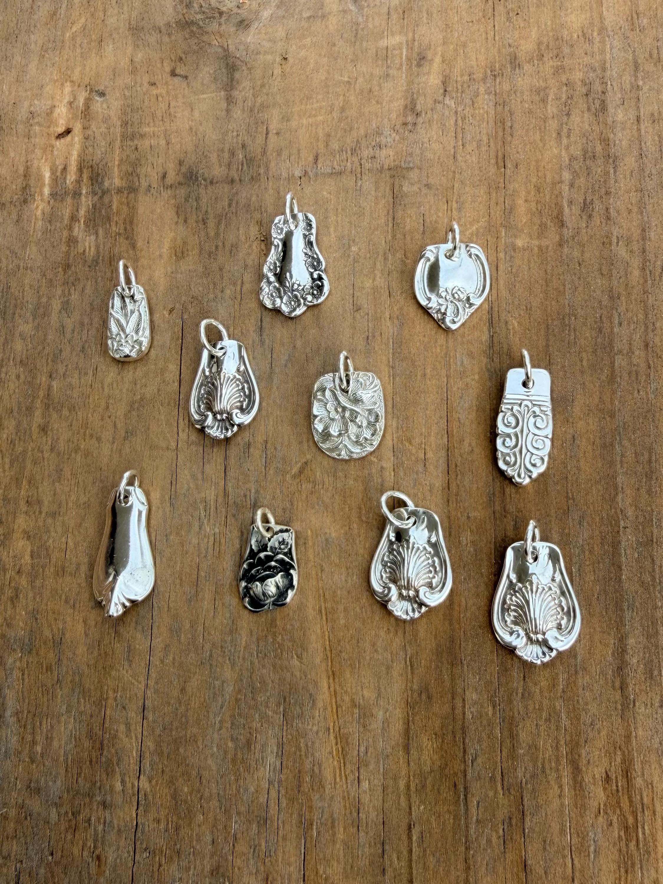 These pendants are one of a kind, designed and handmade by me. made from spoons.