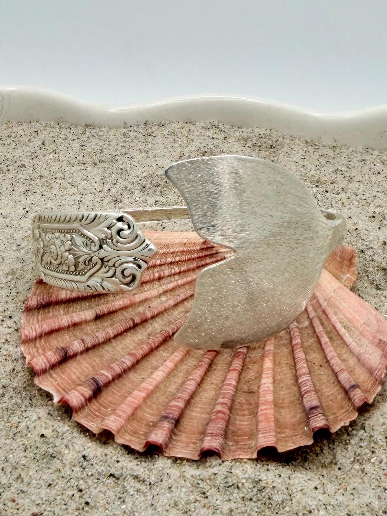 This is beautiful one of a kind bracelet made from a Westmorland Sterling silver spoon. The pattern is called "Milburn Rose" and is from 1940.