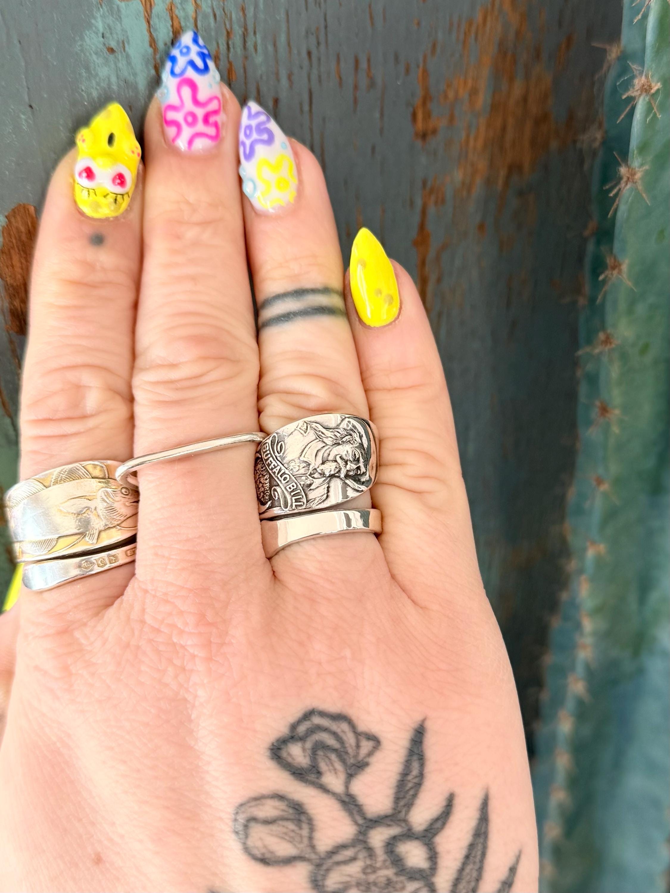 Each ring is carefully crafted and meticulously hand hammer wrapped to make perfectly round ring. This is something I obsess over so that I know my customer gets a perfectly round and perfectly aligned spoon ring.