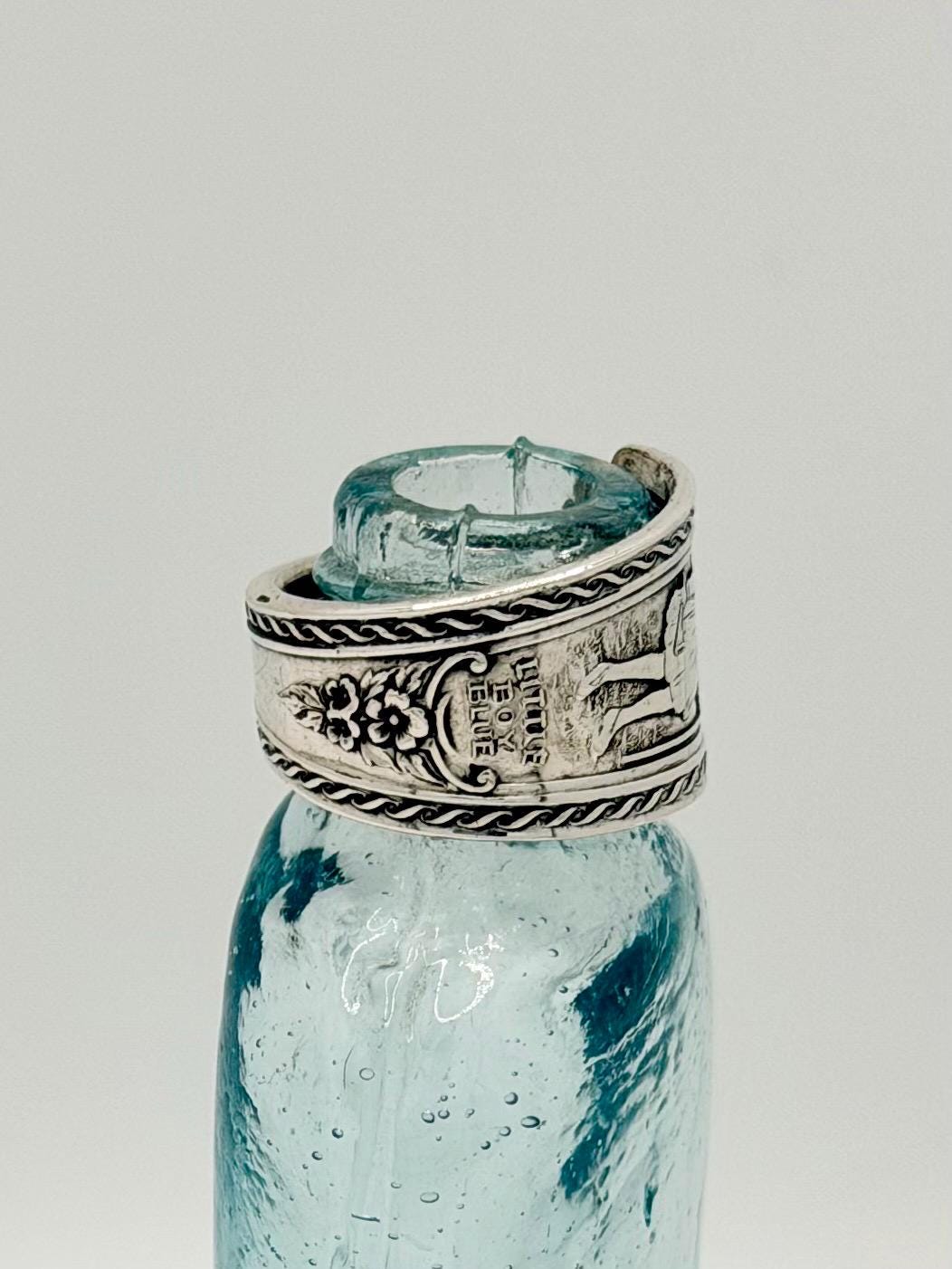 This is a spoon ring made from an International Sterling silver spoon. The pattern is of little boy blue.