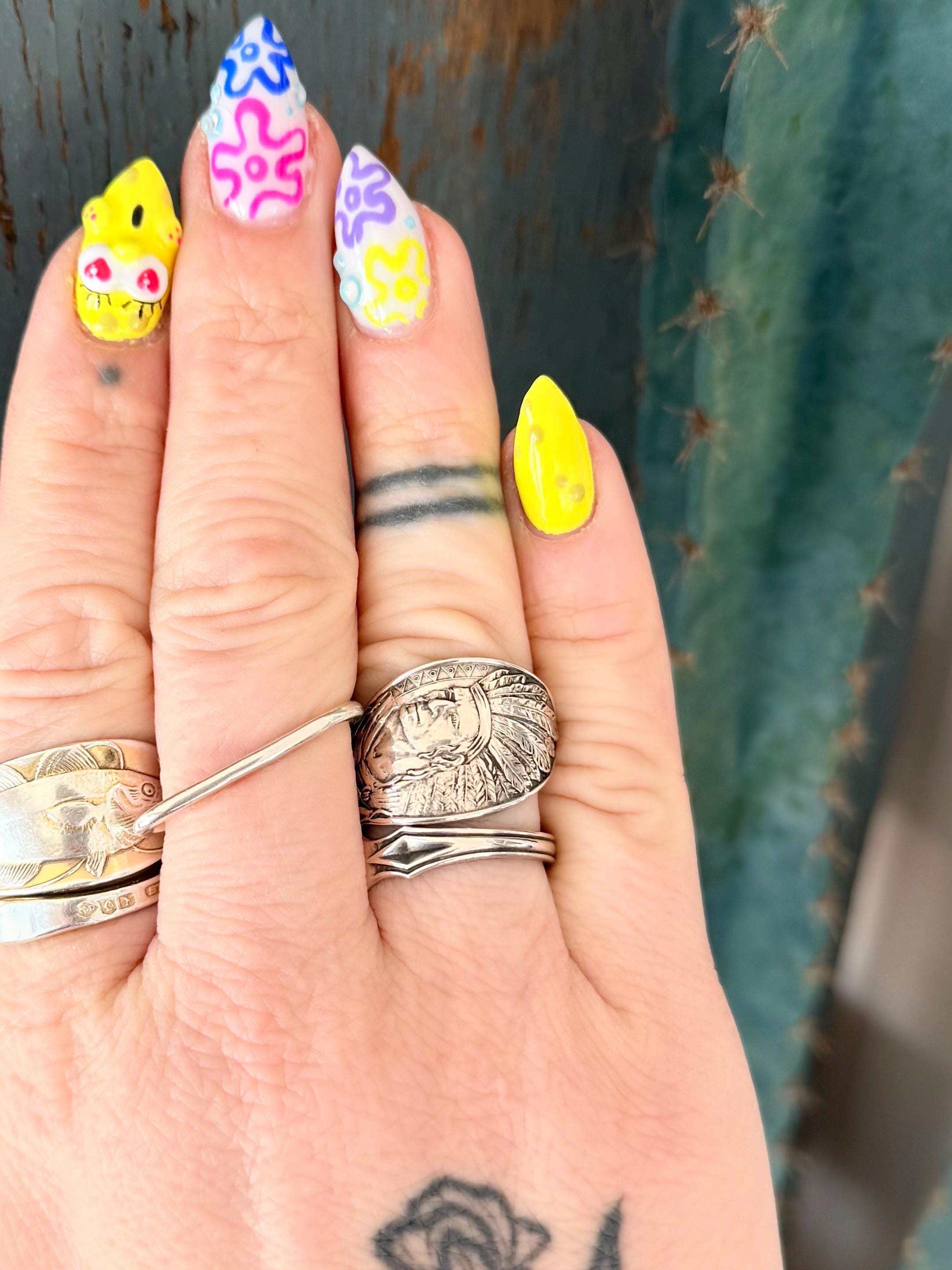 Each ring is carefully crafted and meticulously hand hammer wrapped to make perfectly round ring. This is something I obsess over so that I know my customer gets a perfectly round and perfectly aligned spoon ring.