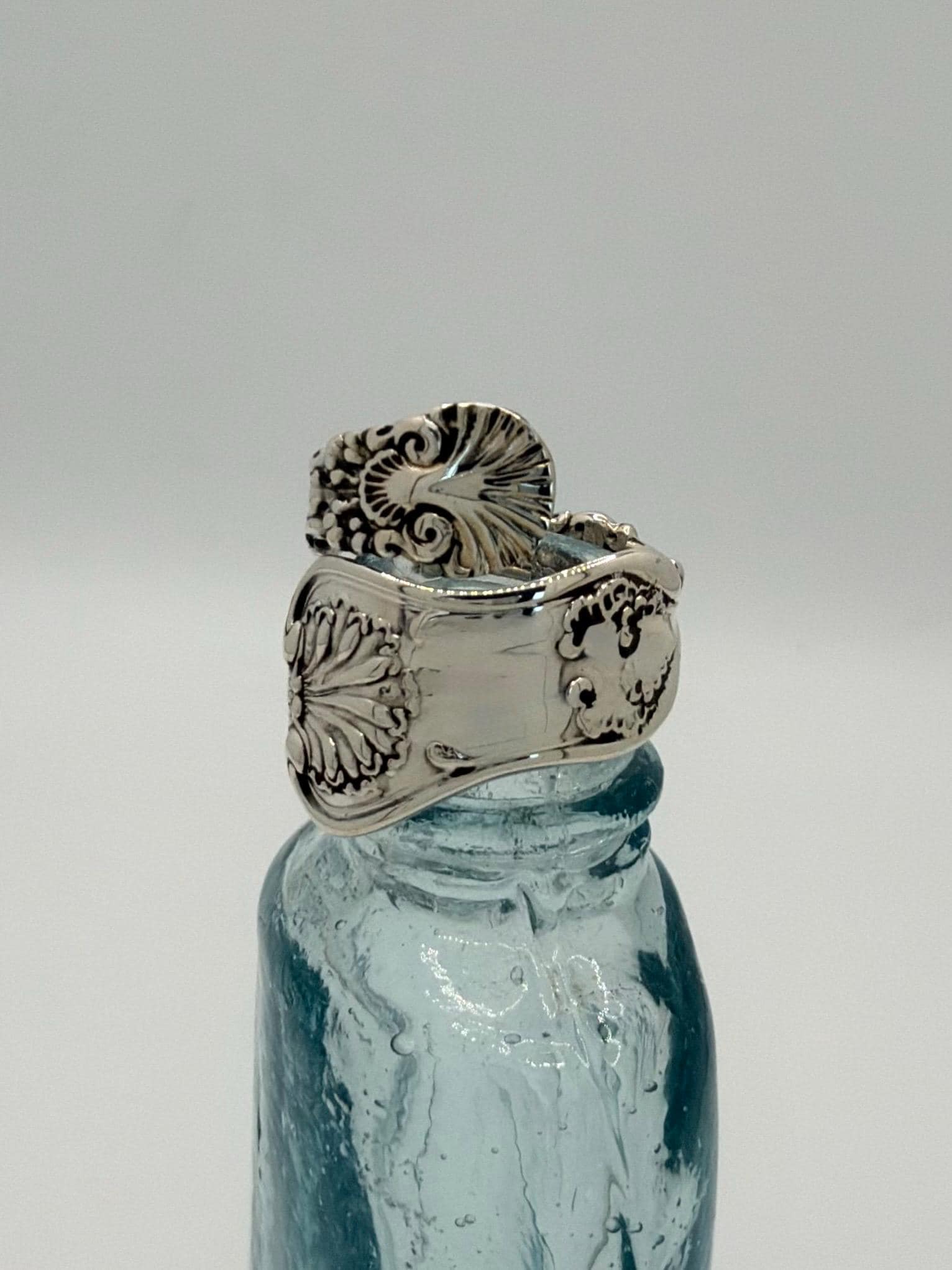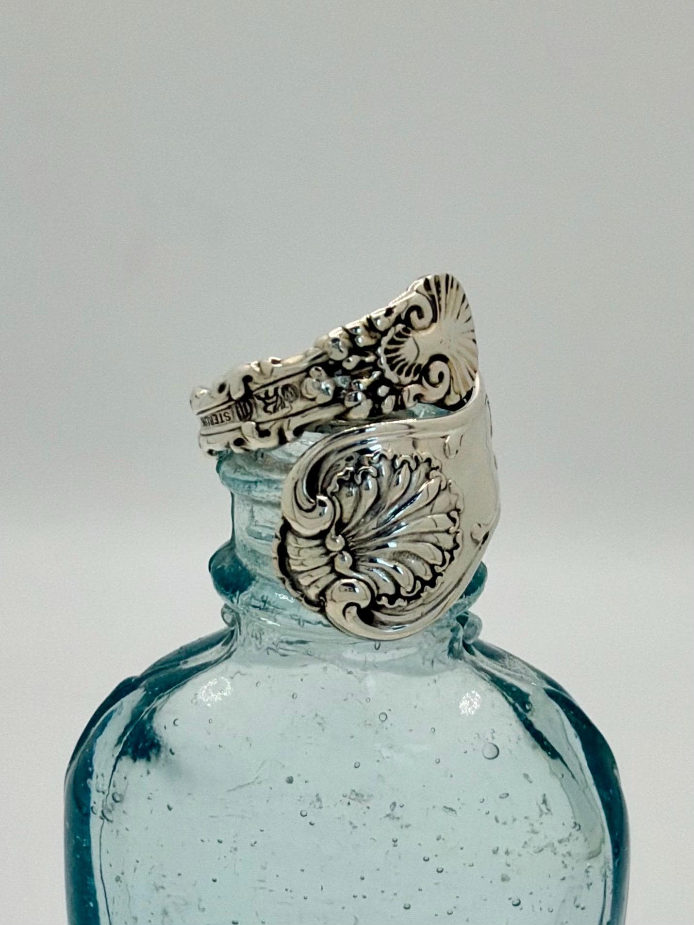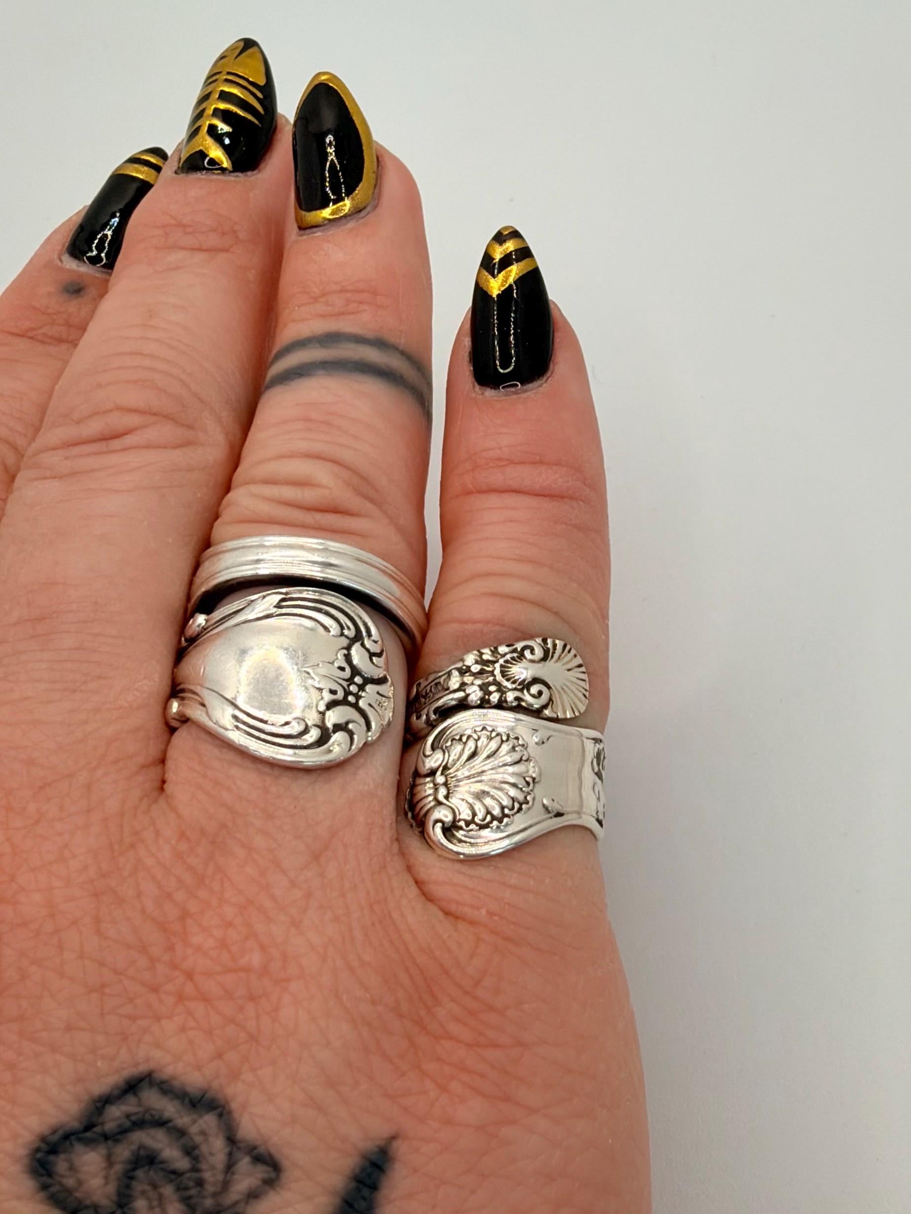 This ring is made from a Whiting Sterling silver spoon. The pattern is called "Imperial Queen" which is printed on the side. It was made in the year 1893.