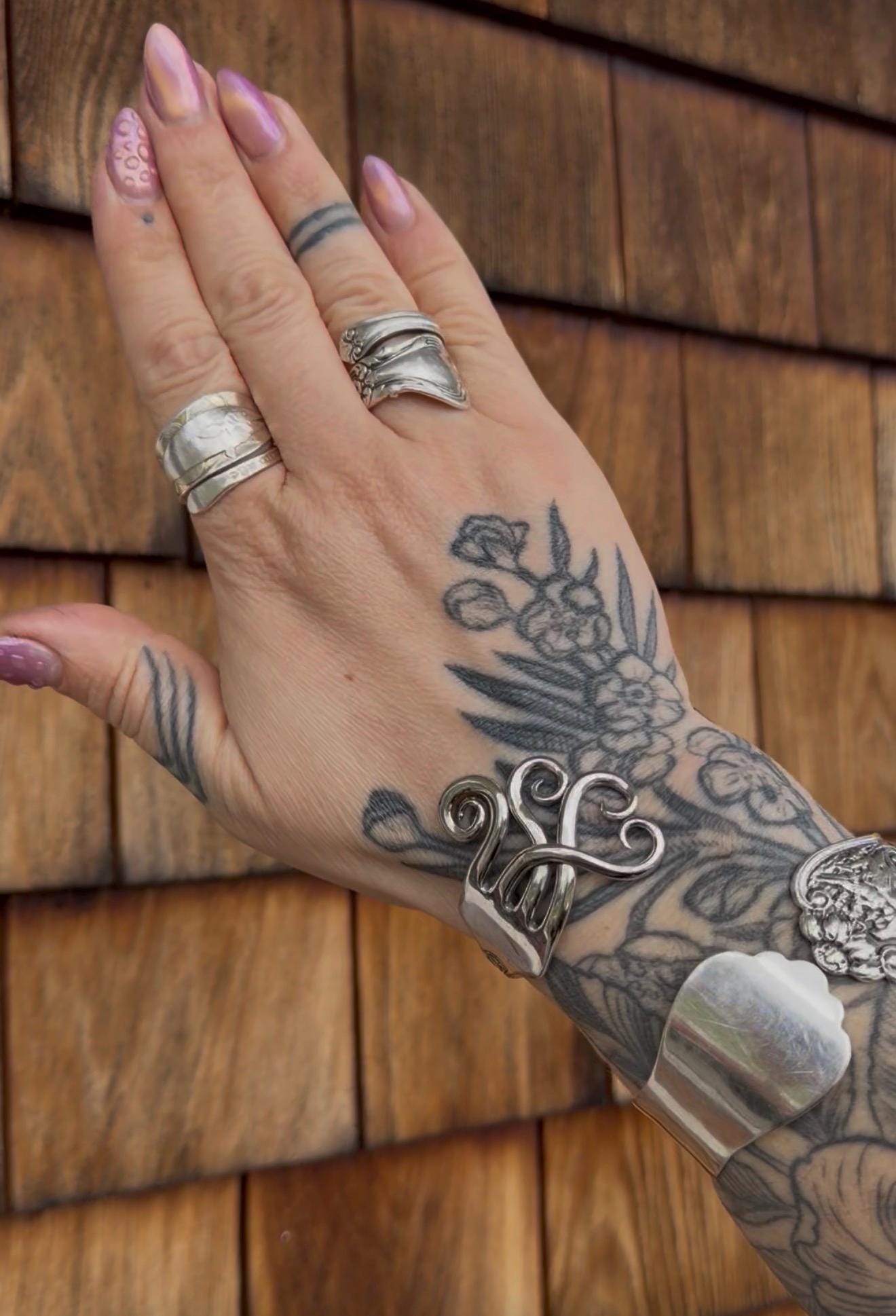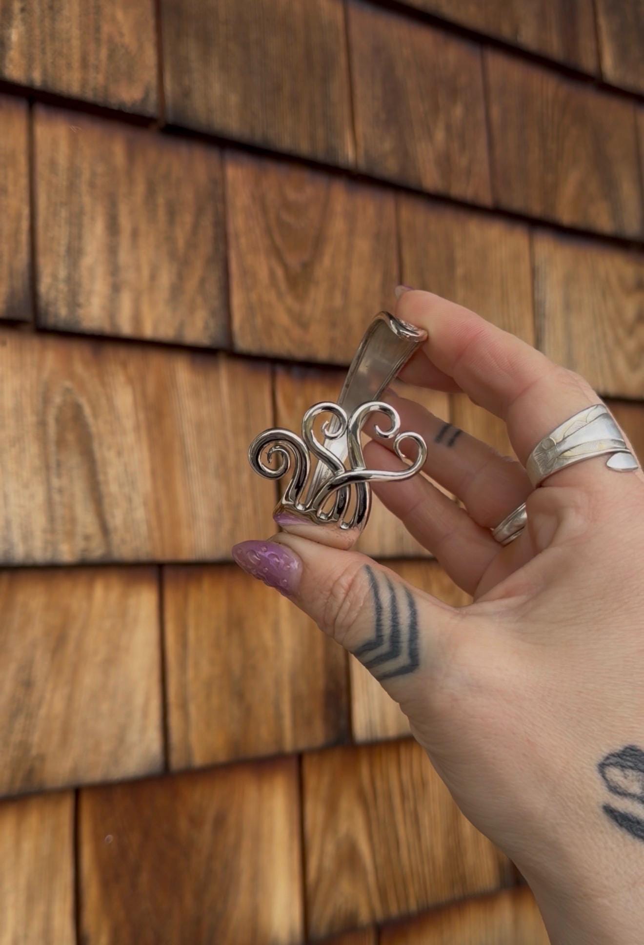 This amazing piece is a winded tine fork bracelet handmade from a sterling silver fork. Pick your pattern. Attached to each pattern drop down is a reference photo! you pick what pattern suits you most. Each will be hand made for you.