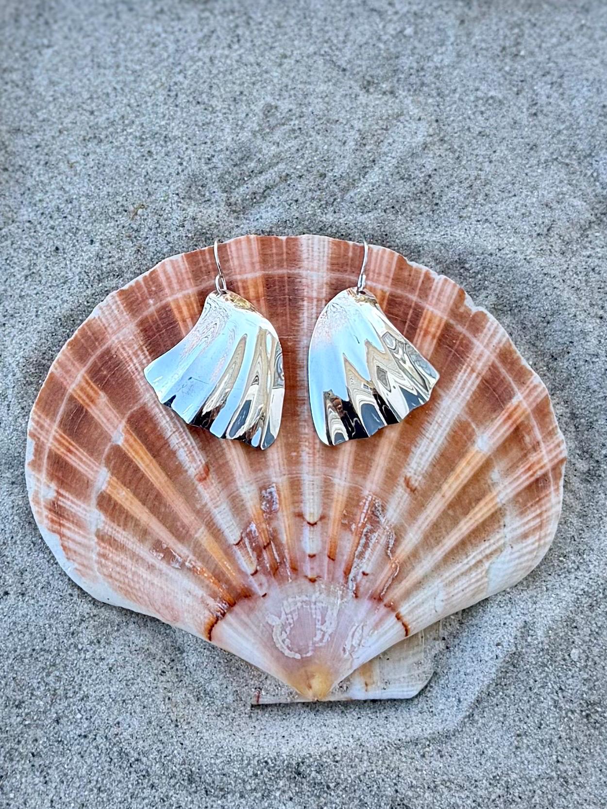 The spoon these earrings were made from was a real vintage sterling spoon but the earring hooks are brand new and have never been worn. Both the earring and the hooks are Sterling Silver.