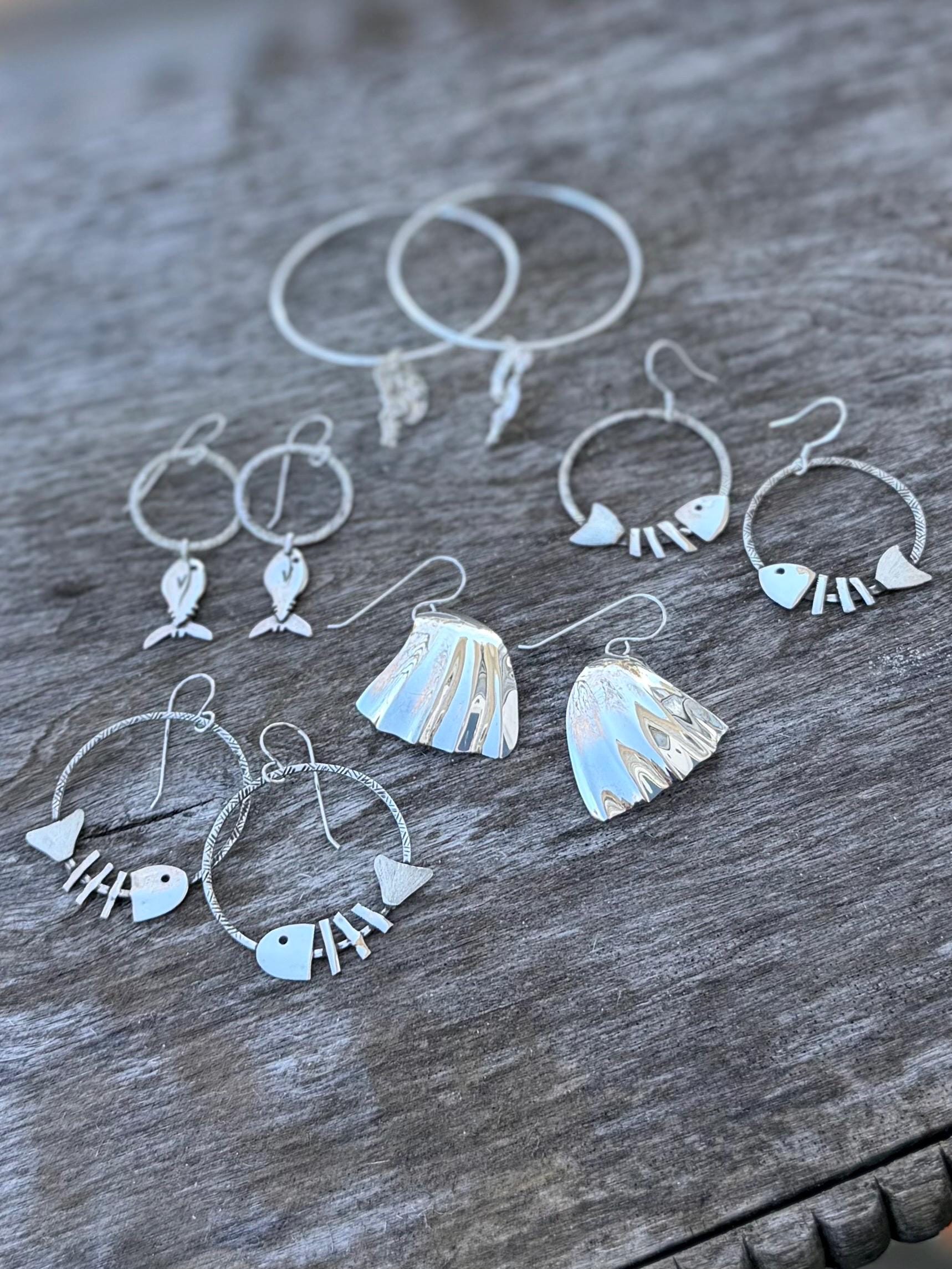 These very unique, one of a kind pair of earring were made from a sterling silver sugar spoon bowl. These are light weight.