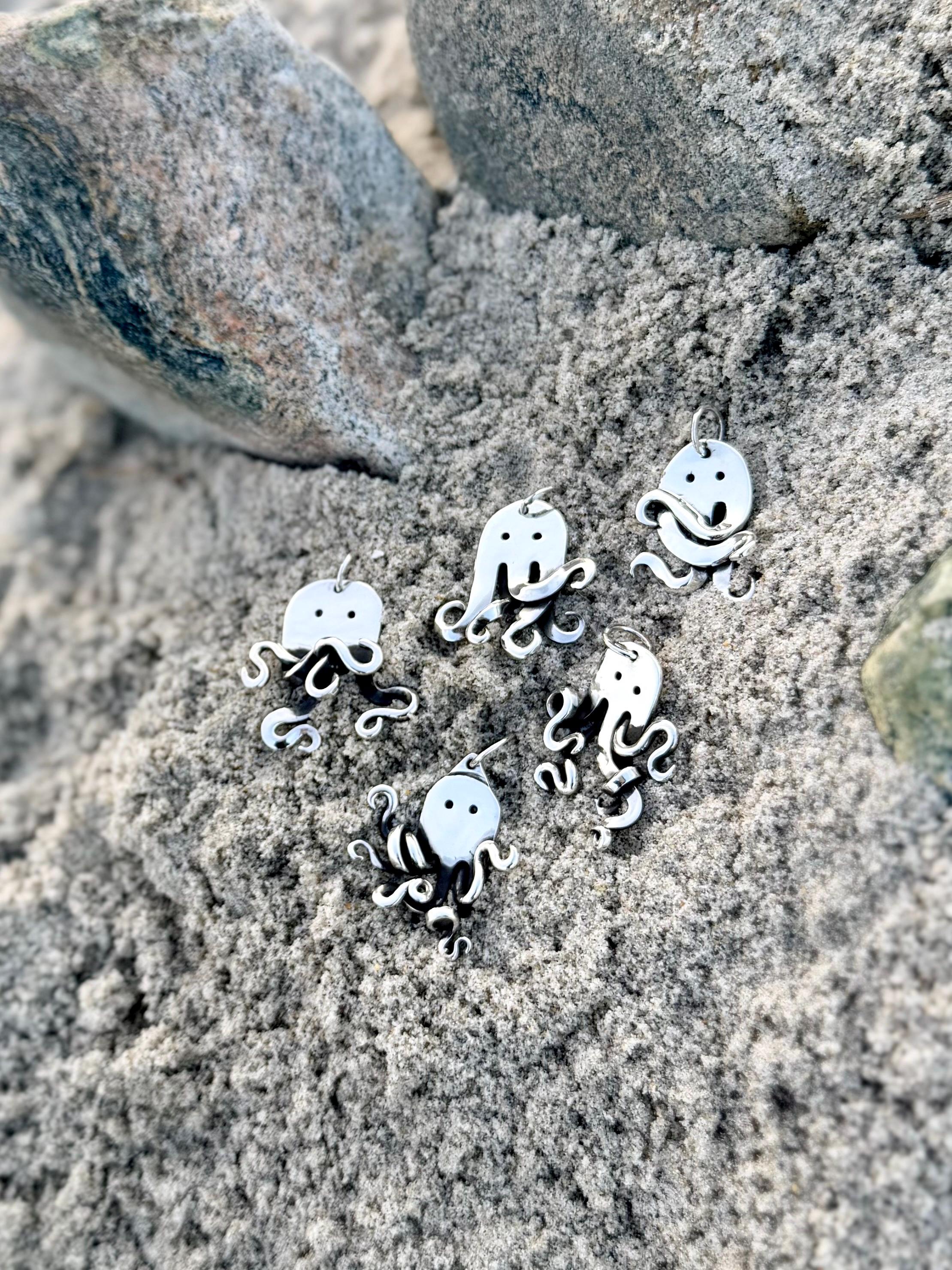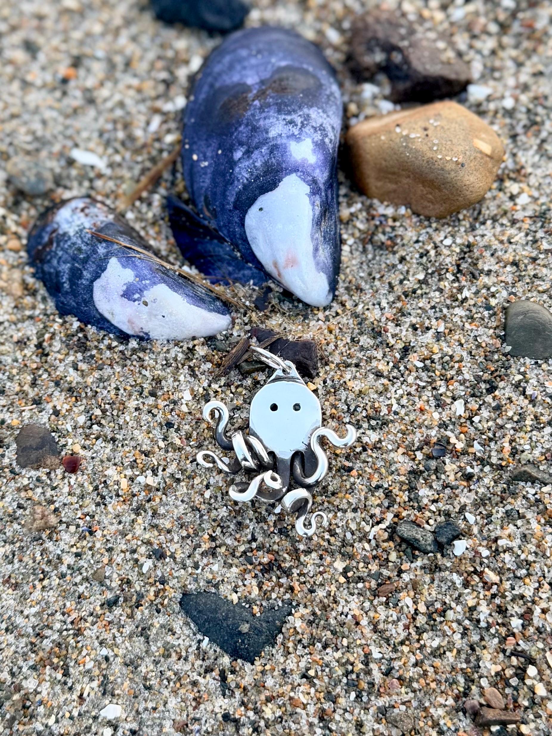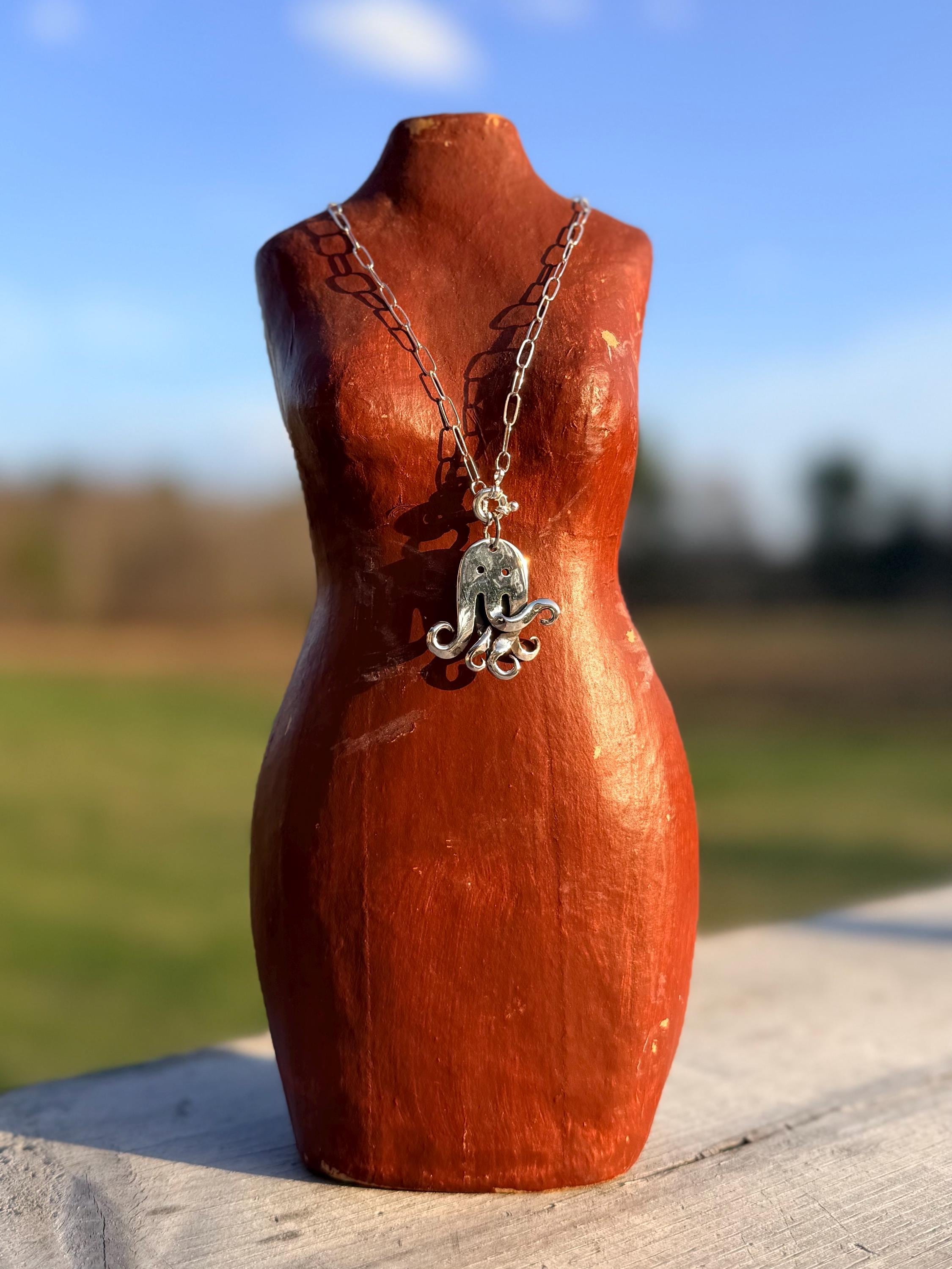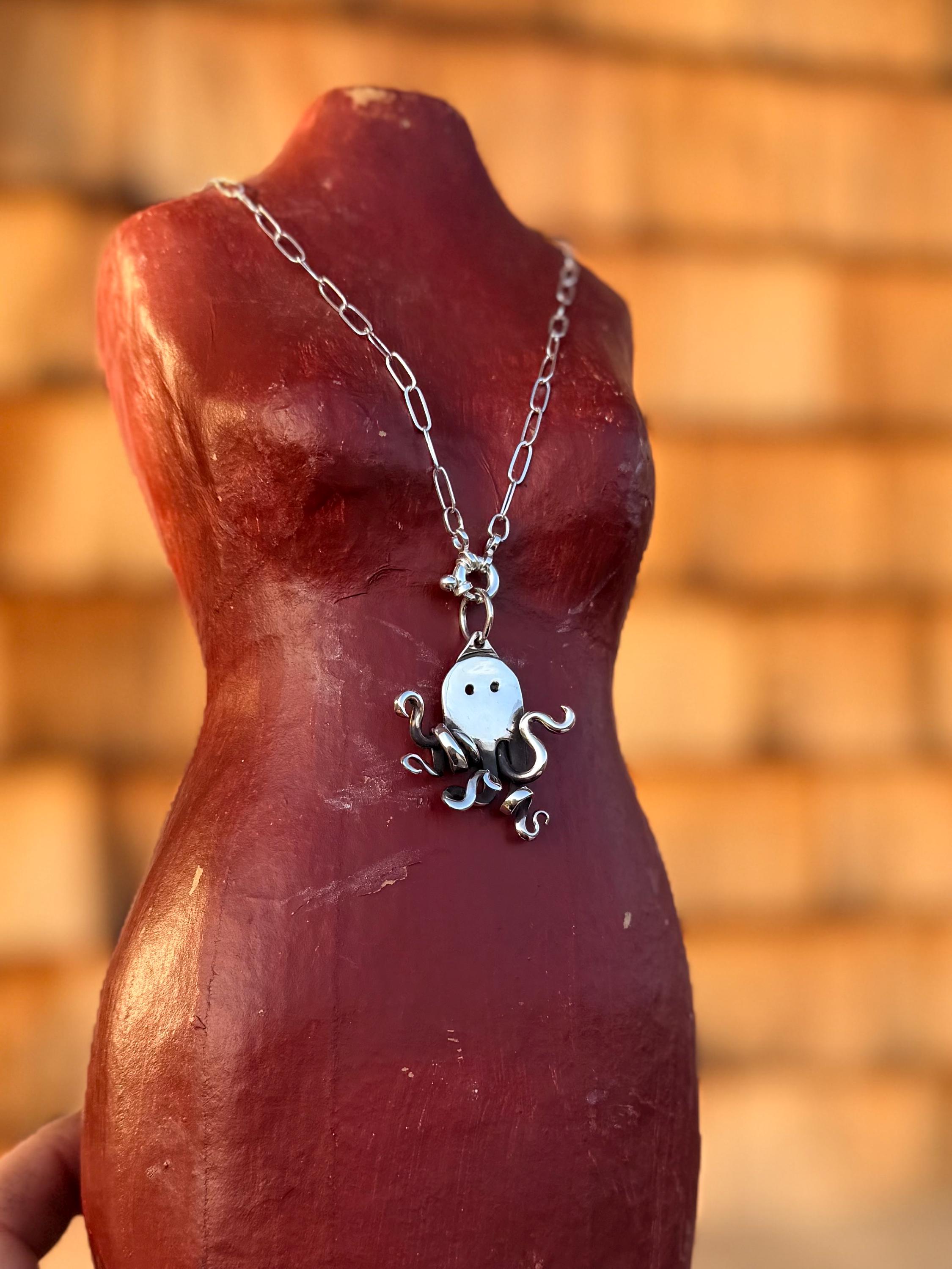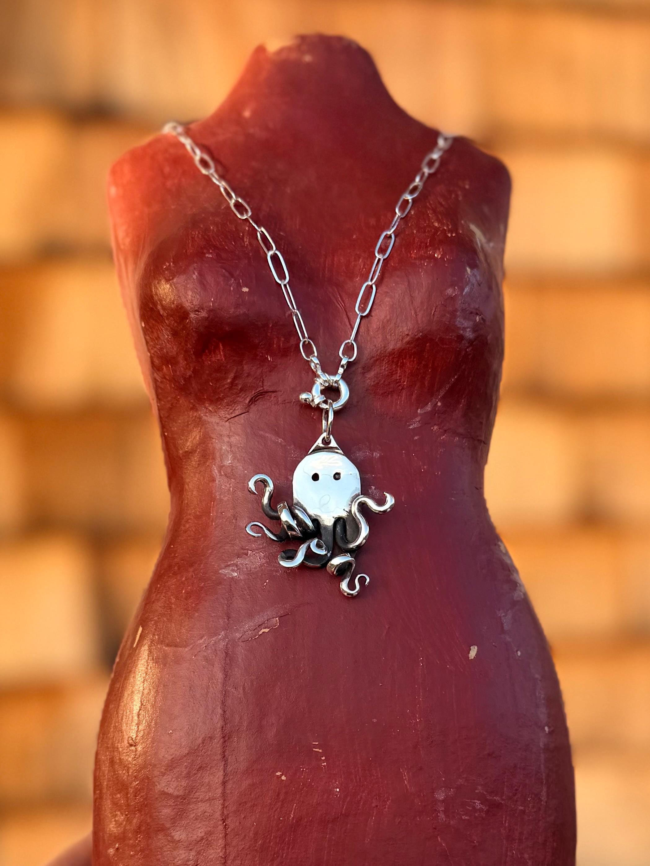 This cutie is a solid sterling silver octopus pendant hand made from sterling fork.