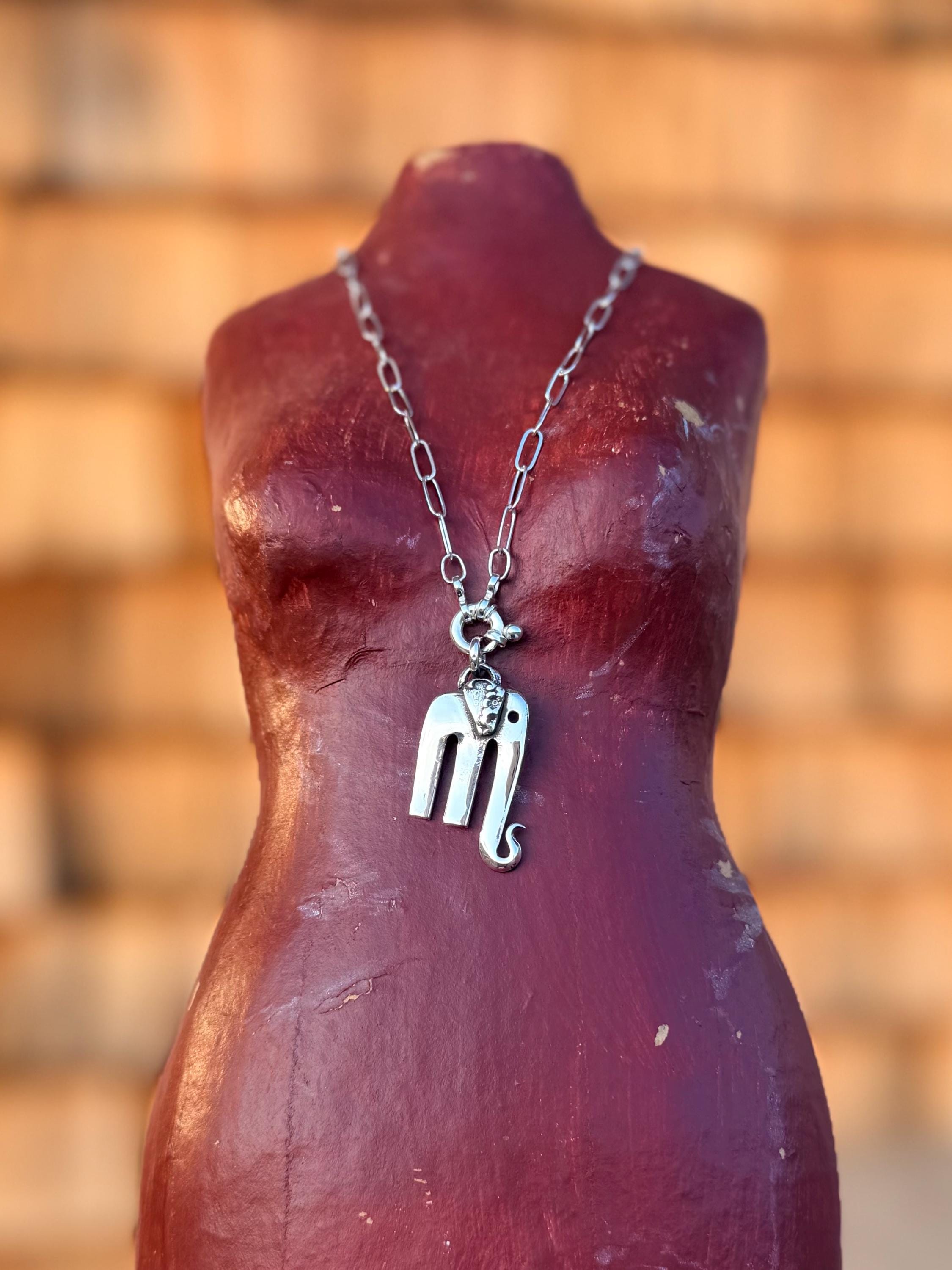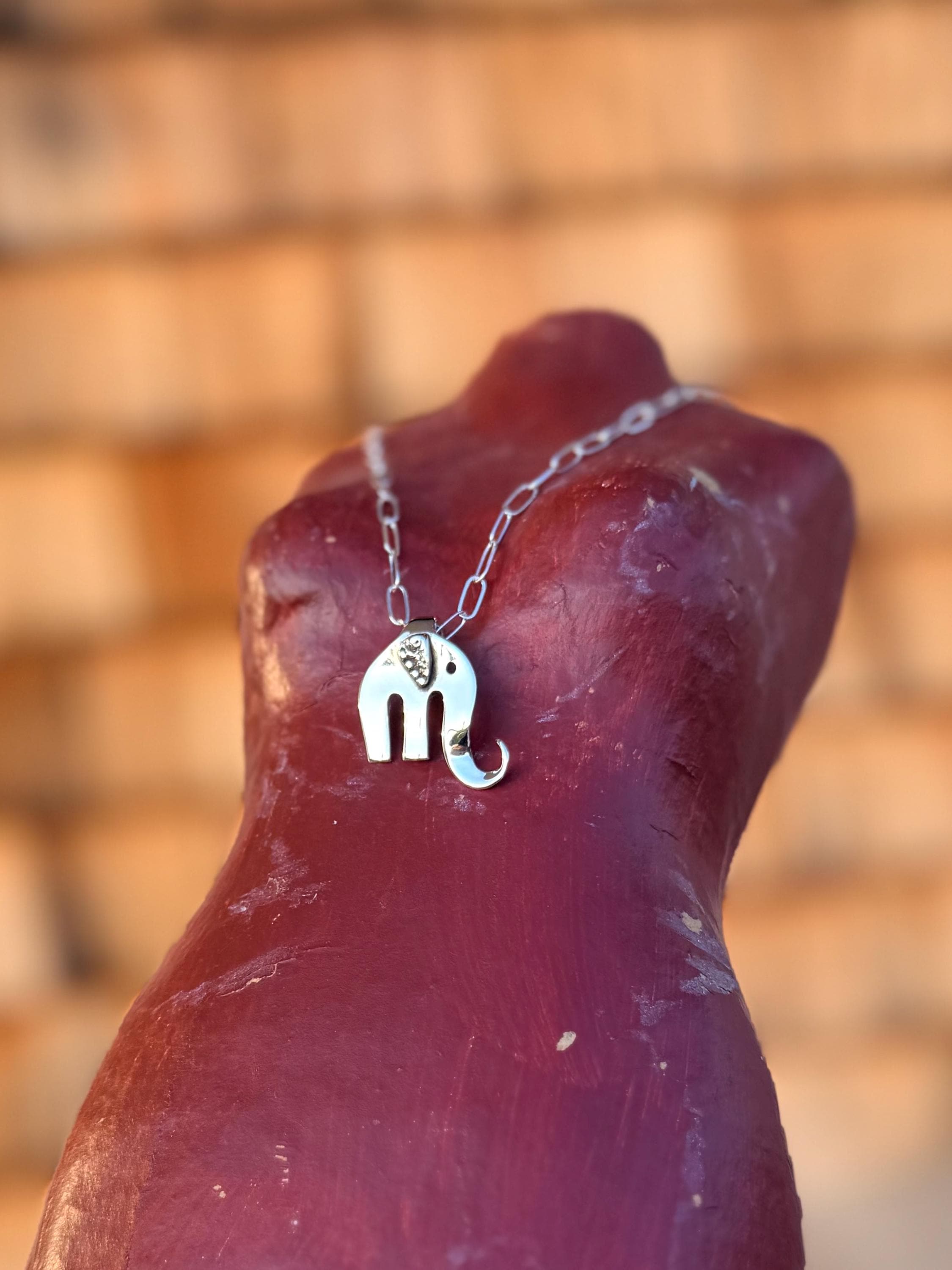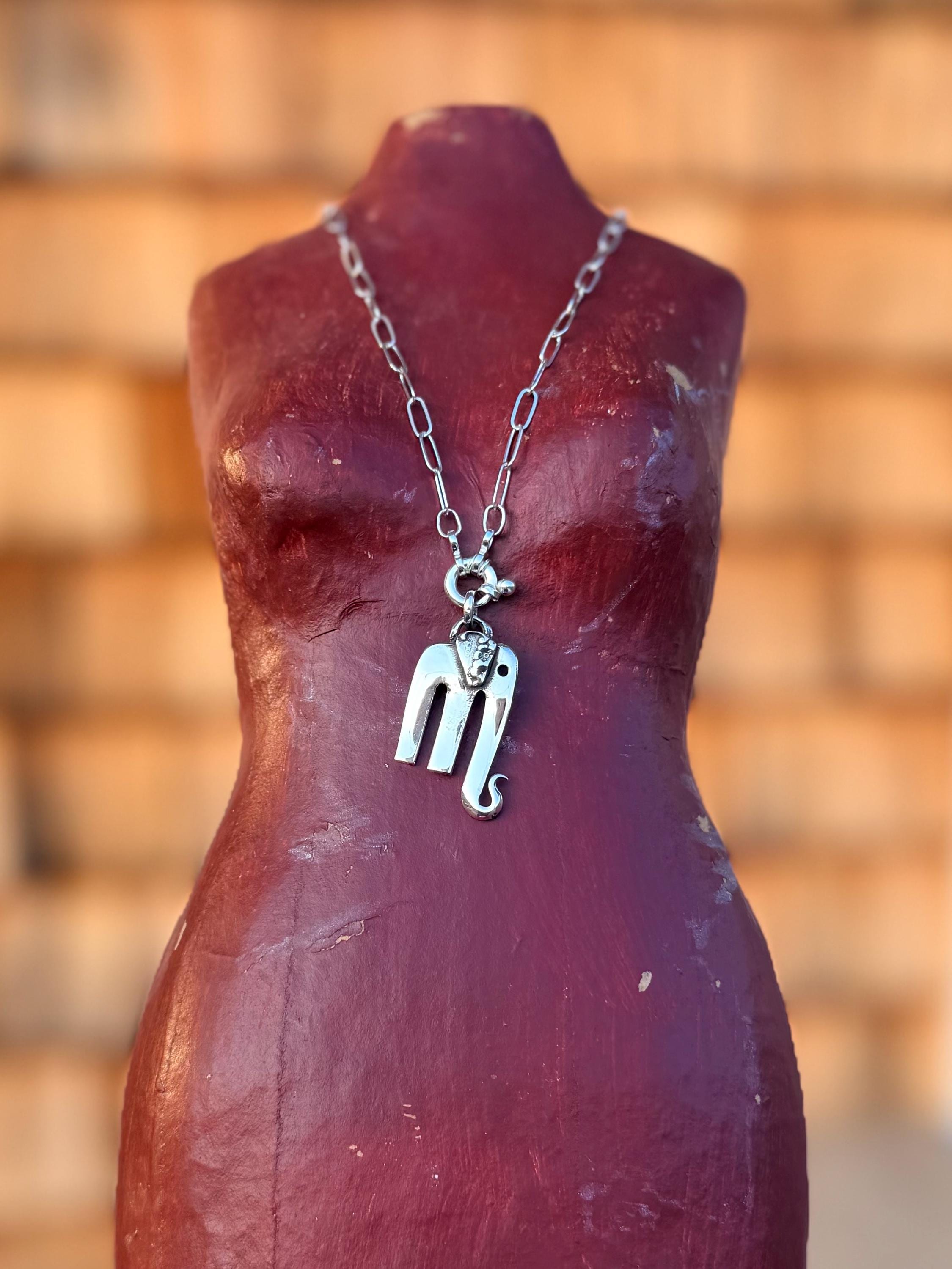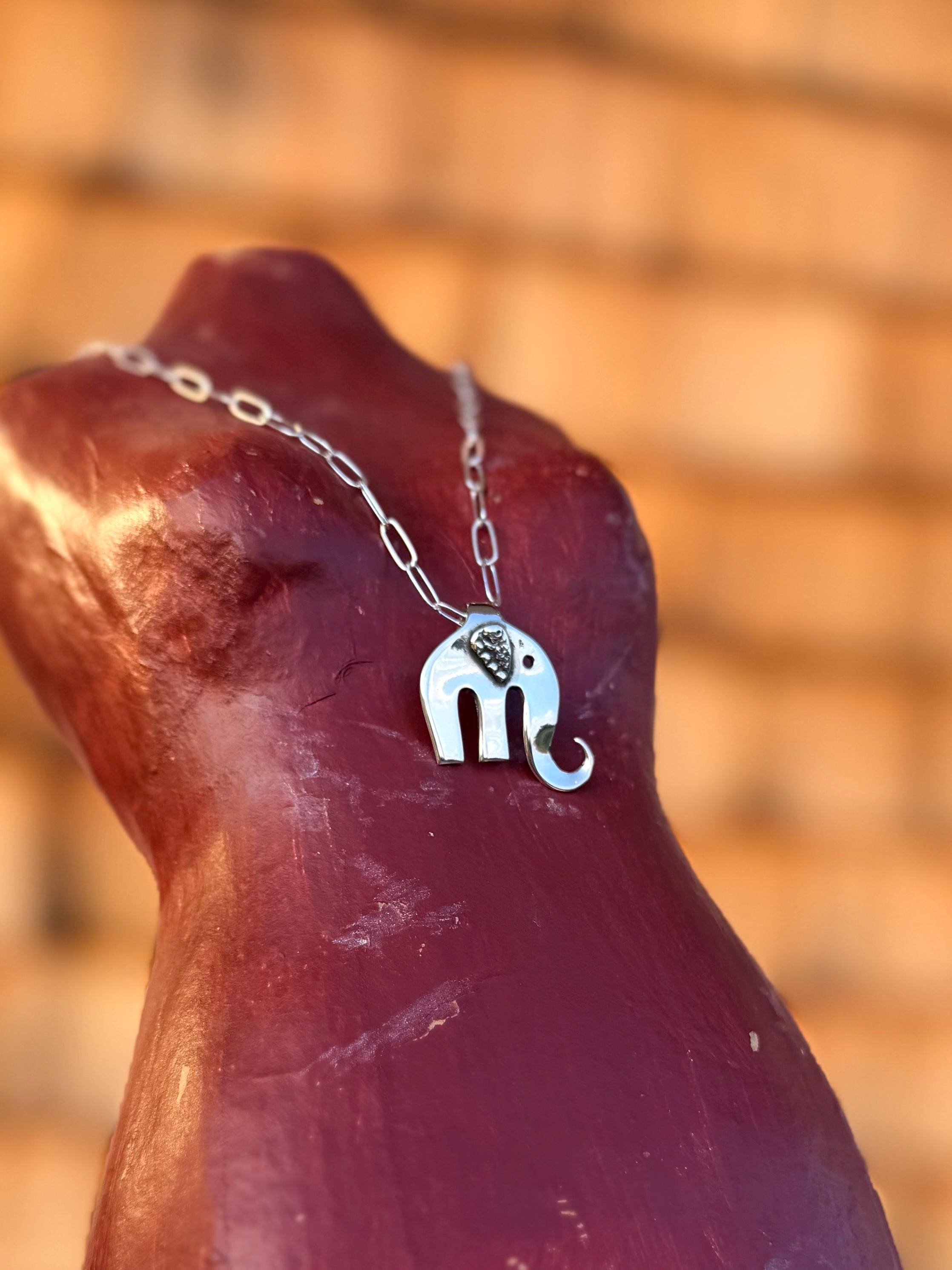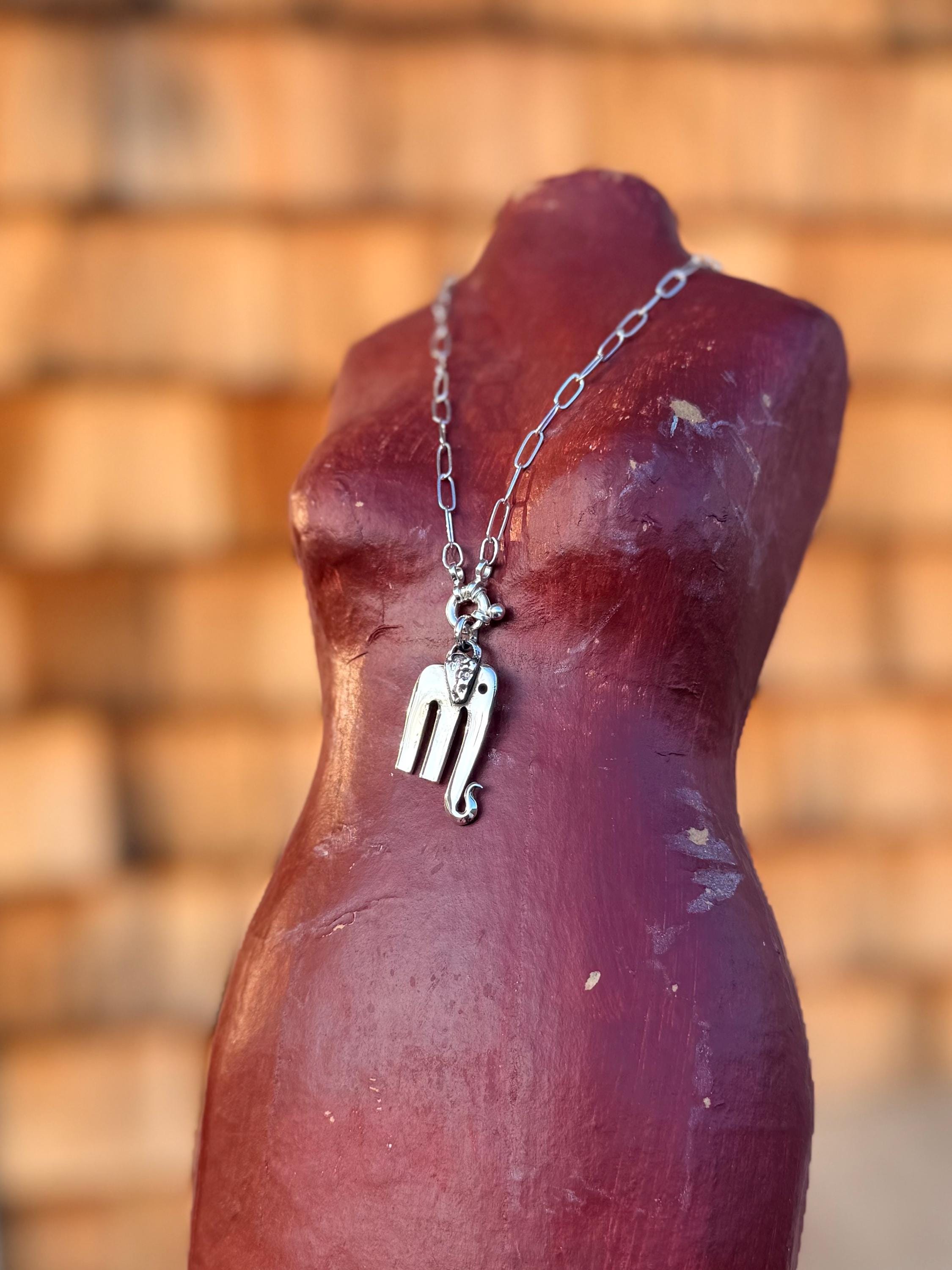 These little cuties are solid sterling silver elephant pendants hand made from a 3 prong olive fork with spoon handle pieces for ears. The perfect little charm.